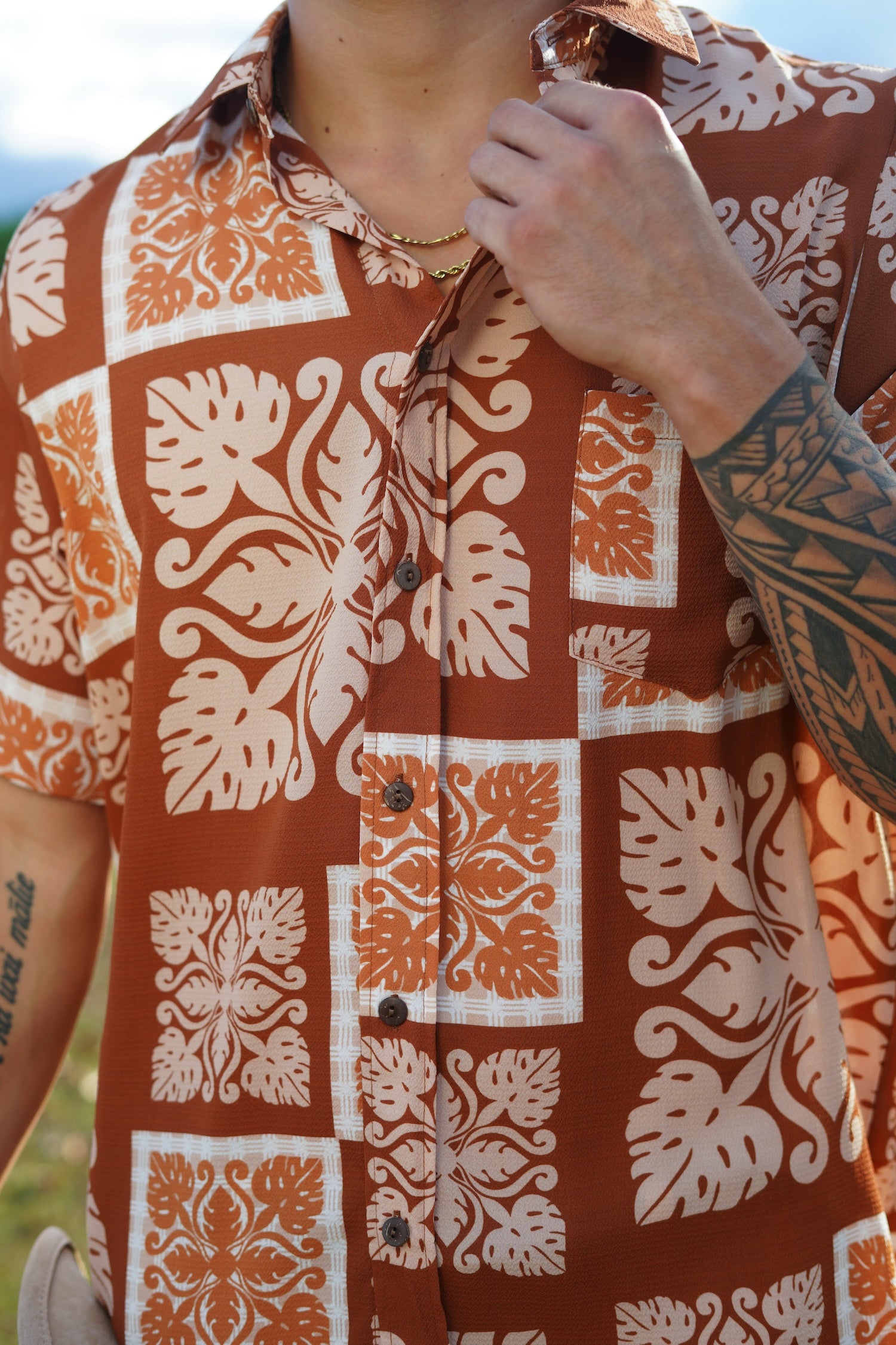 My wife and I love our matching prints and the fabric feels good. We just wanted to say Mahalo’z