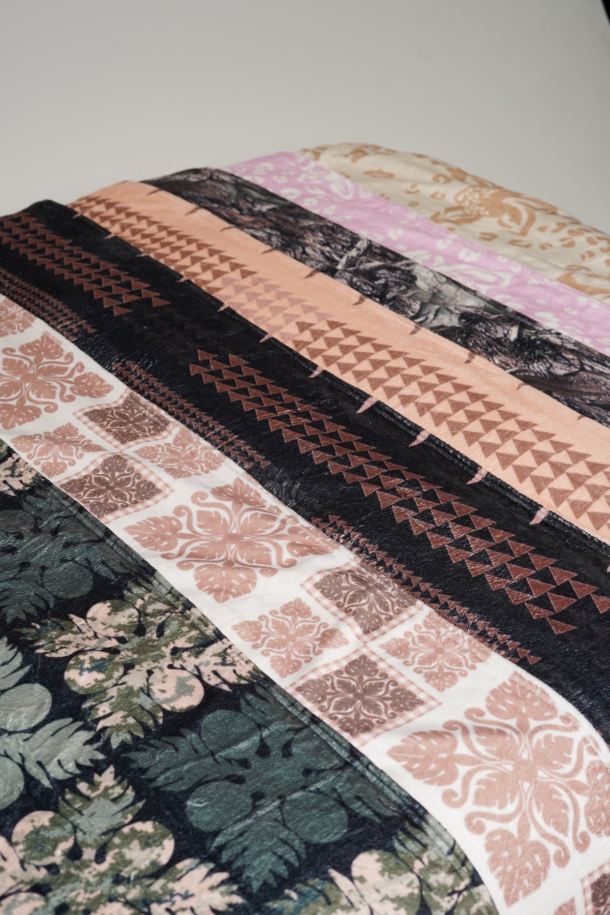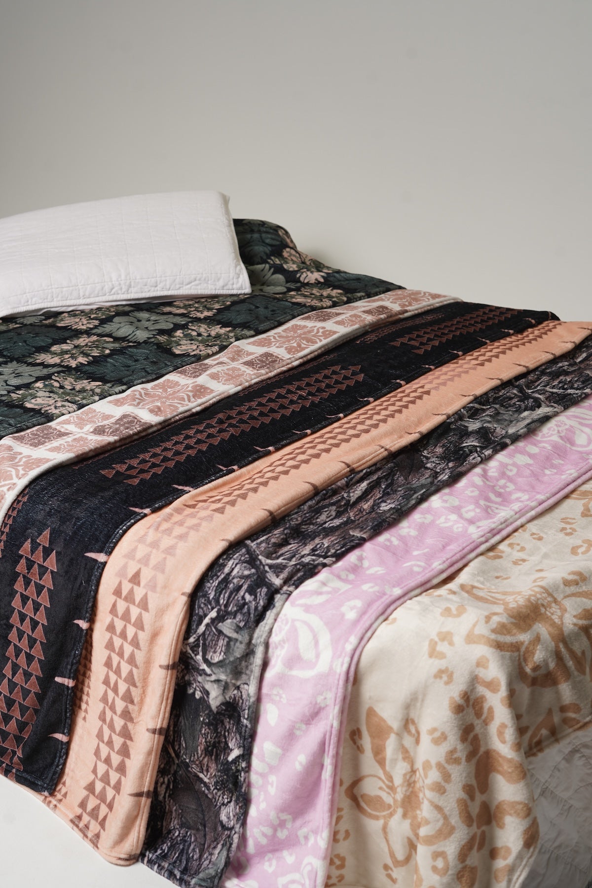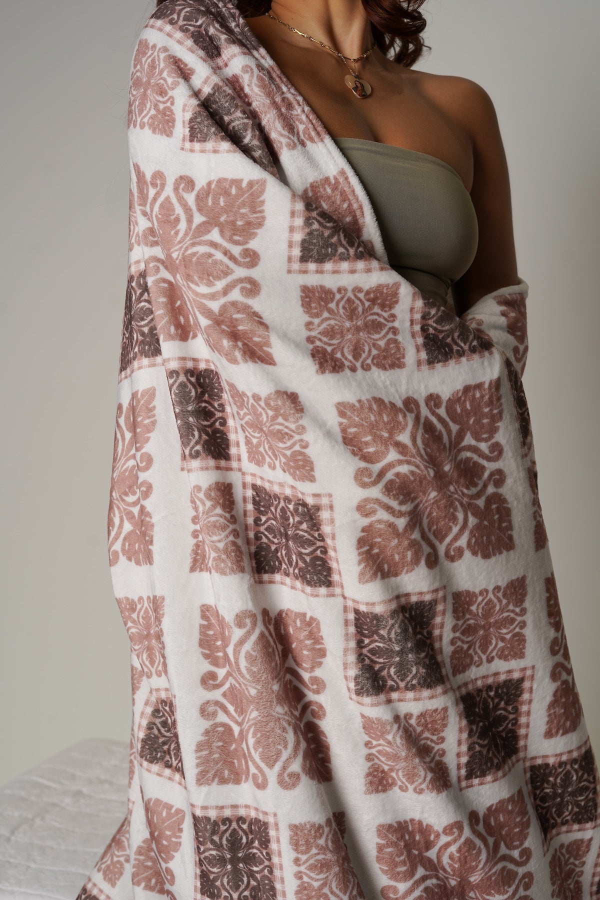 The Pumehana Blanket is extra large and cozy! Available in 7 prints: Mauka, Lōkahi Black, Lōkahi Nude, Country Quilt, Orchid Cheetah Nude, Orchid Cheetah Lilac, and Ulu Army.