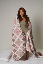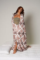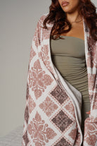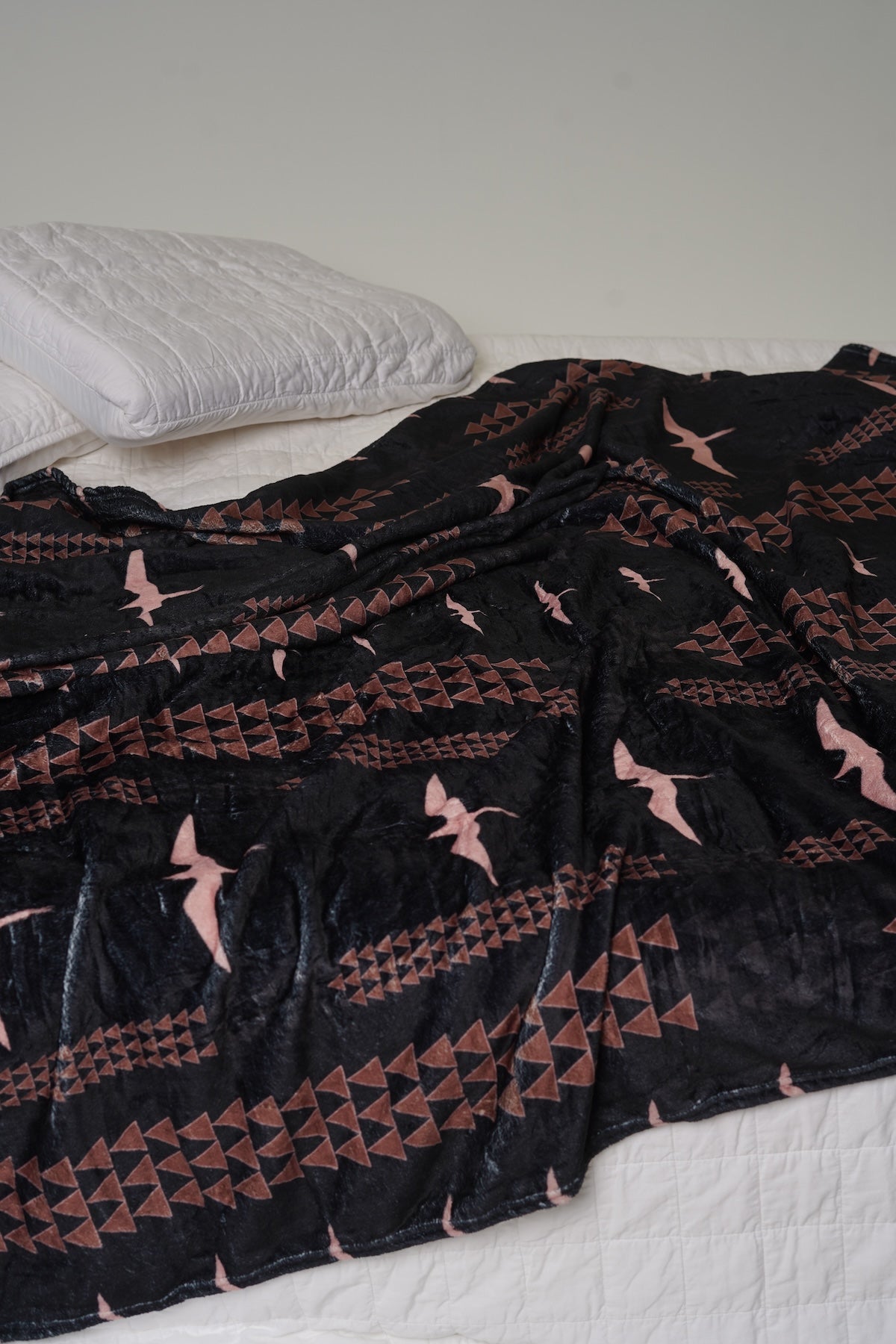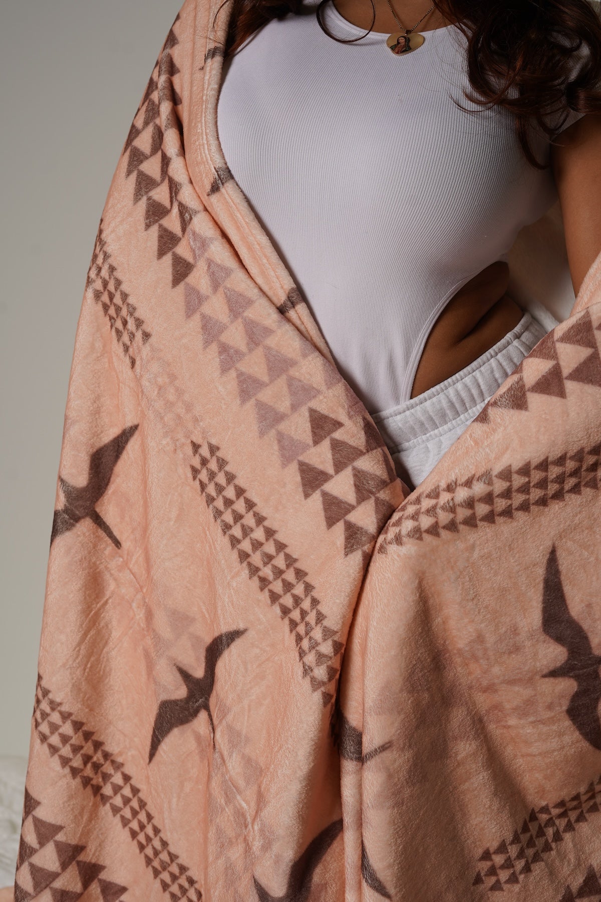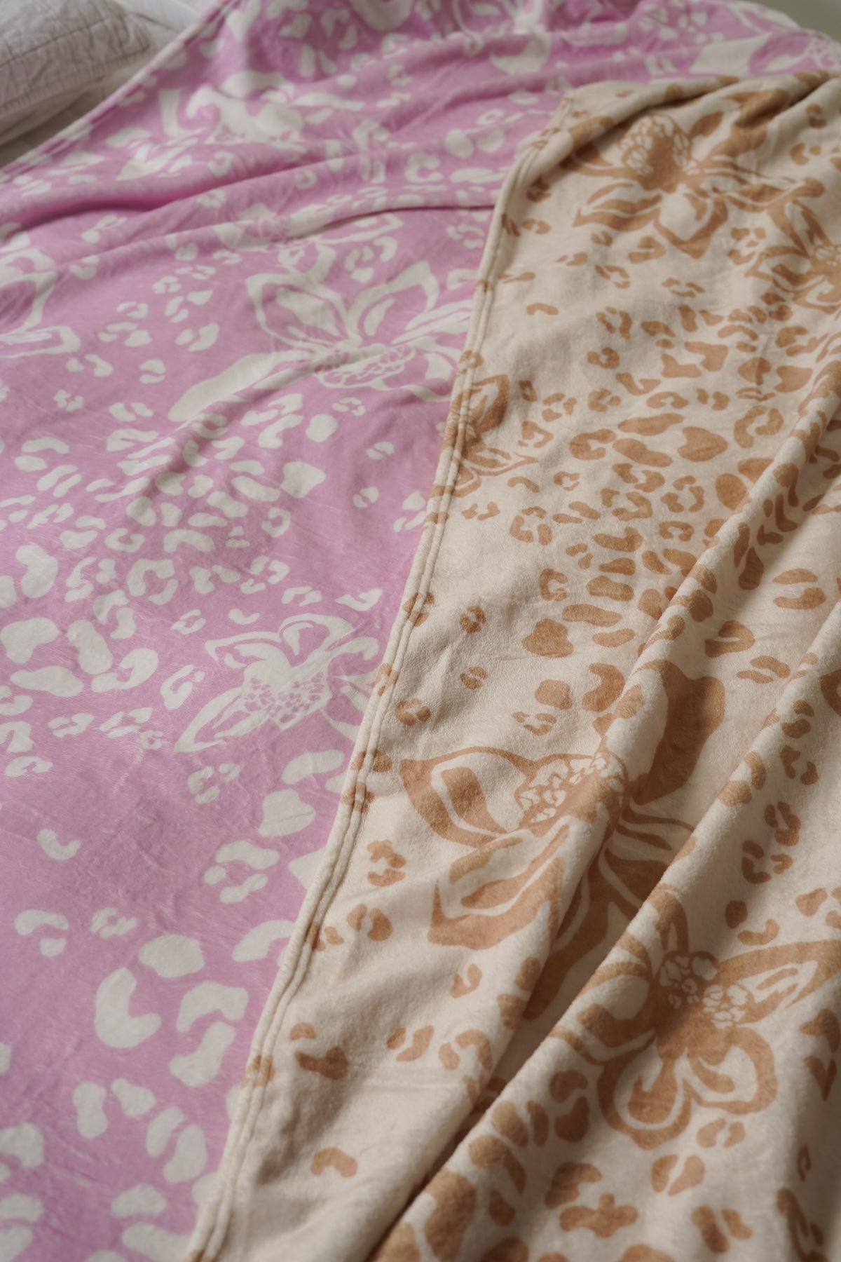 The Pumehana Blanket is extra large and cozy! Available in 7 prints: Mauka, Lōkahi Black, Lōkahi Nude, Country Quilt, Orchid Cheetah Nude, Orchid Cheetah Lilac, and Ulu Army.