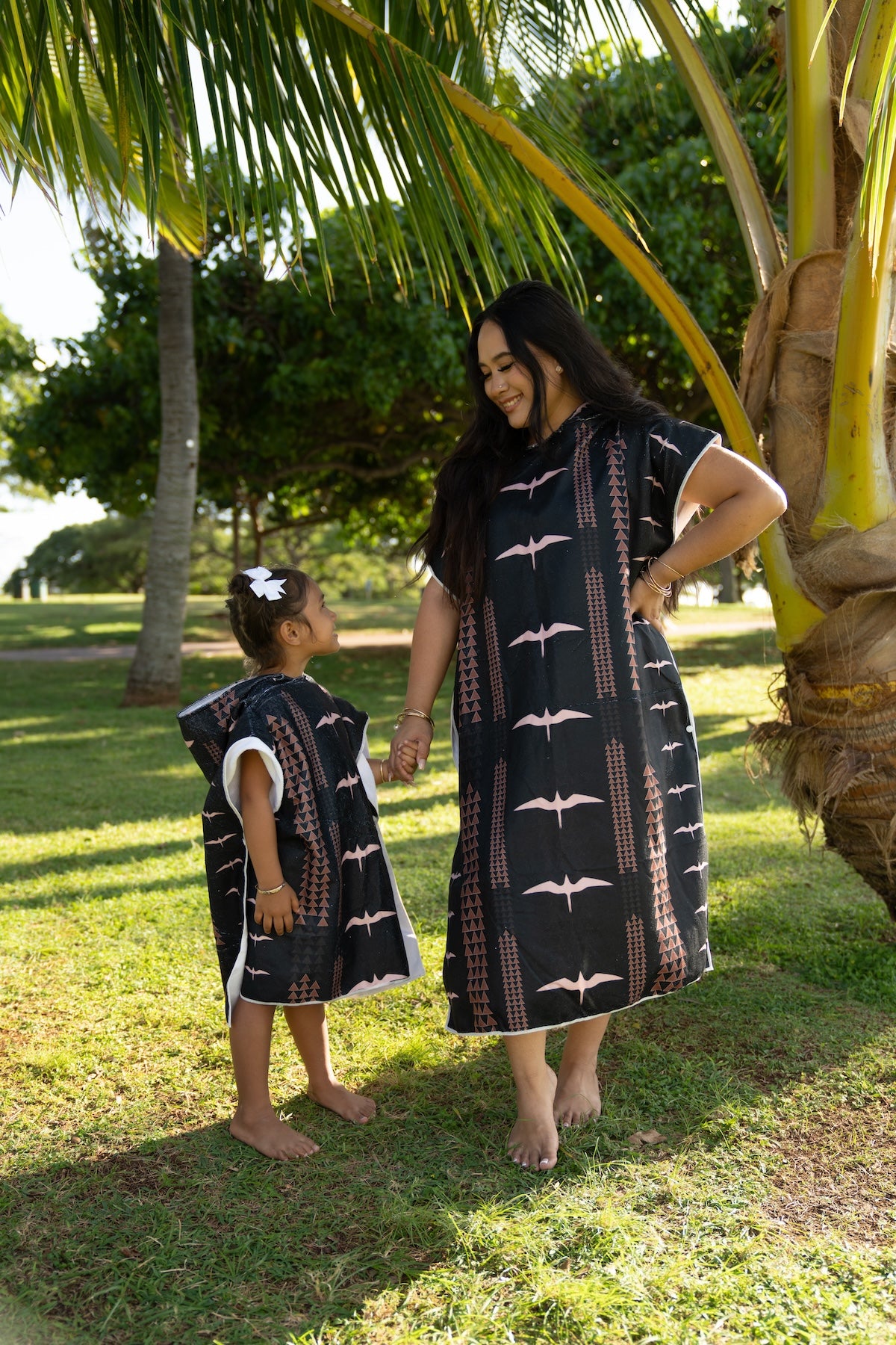 Match your keiki with our Keiki Poncho Towel! Perfect for a quick dry on your beach/pool days, and cute enough to walk around in! Now available in Mauka, Mauna Kea, Opihi, Lokahi Black and Green!