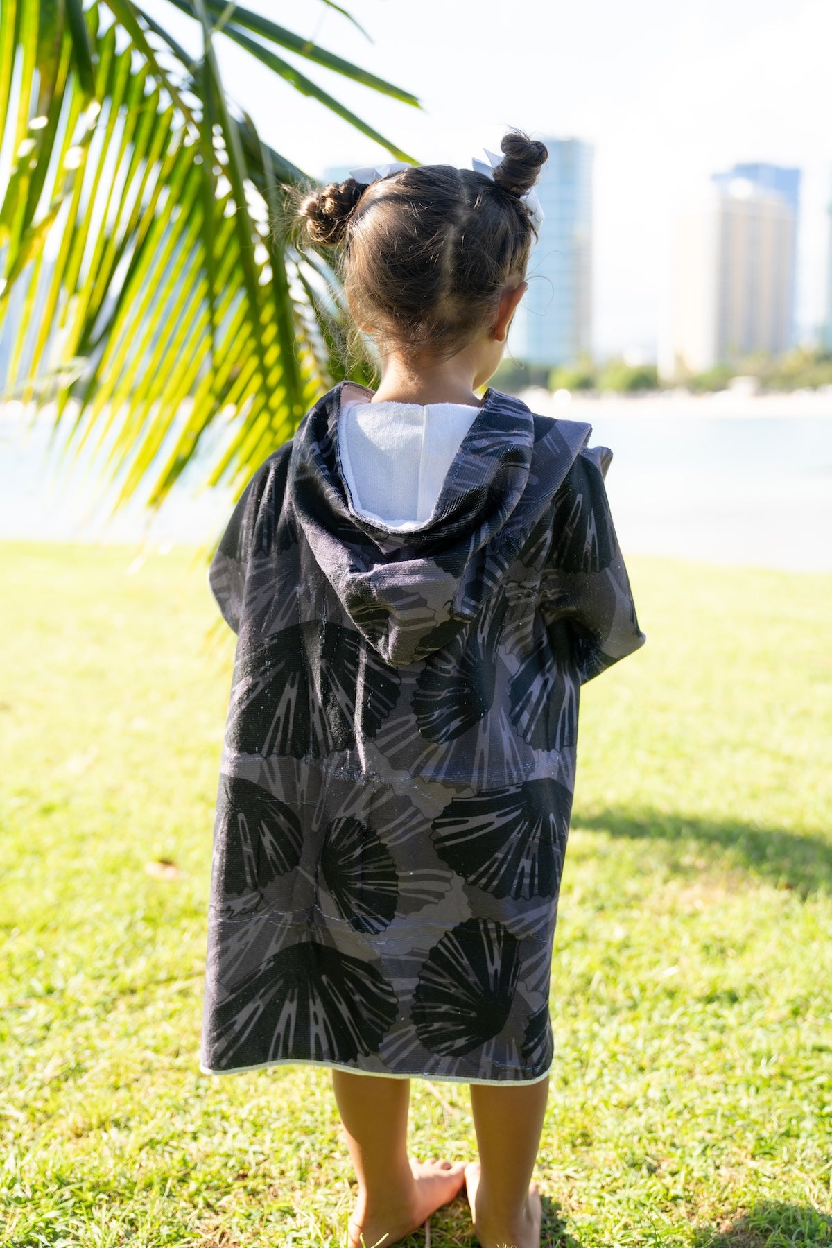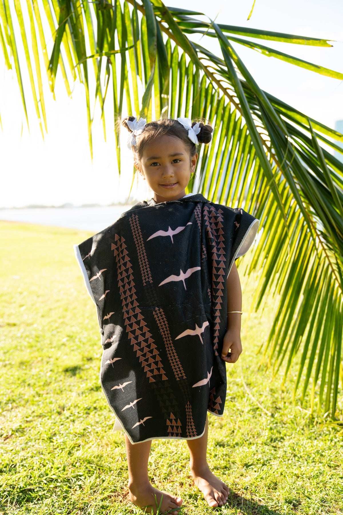 Keep your keiki warm and dry with our Keiki Poncho Towel--matching with our Adult Poncho Towels! Now available in Mauka, Mauna Kea, Opihi, Lokahi Black and Green!