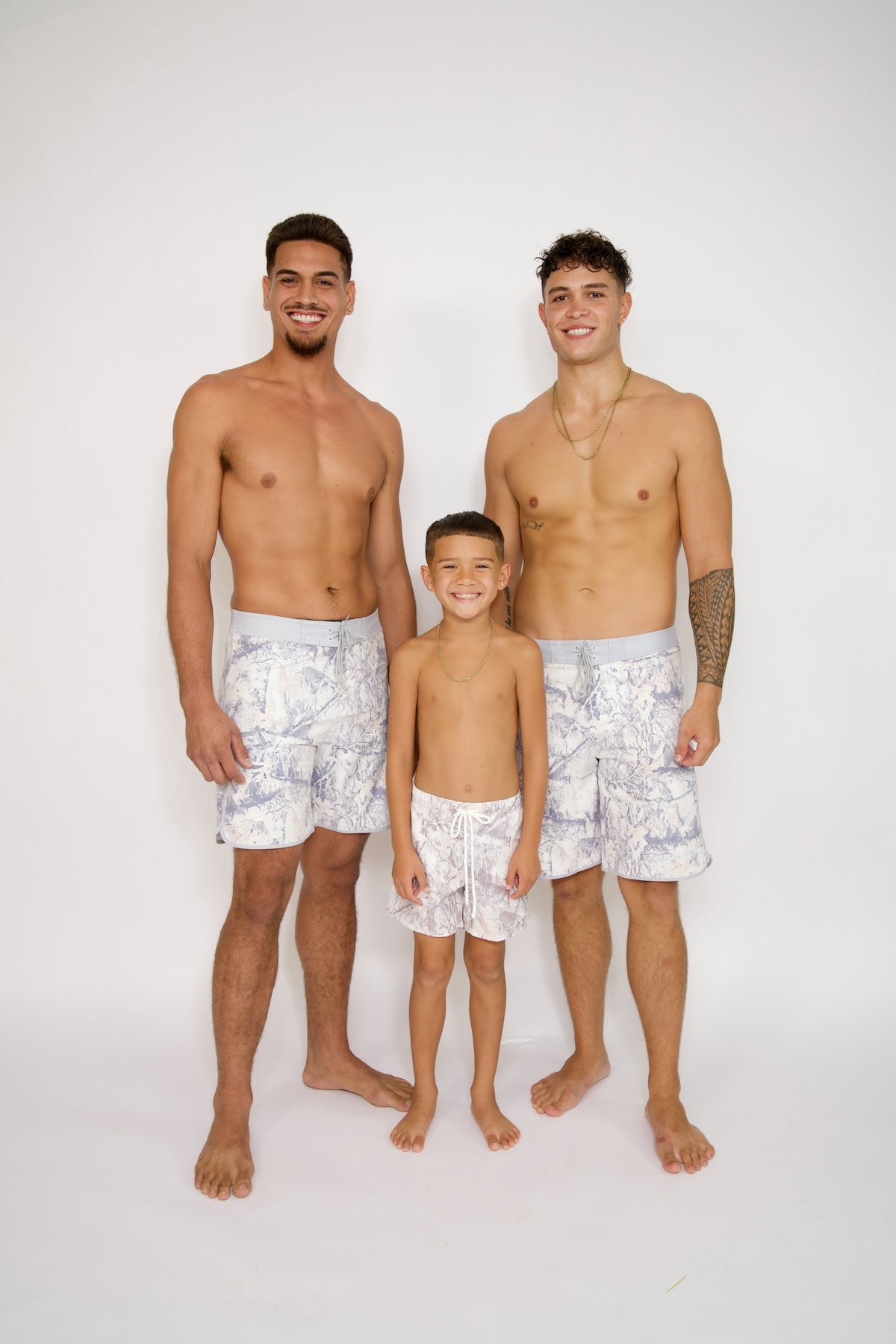 The Kamekona Board Shorts are now available in our Mauna Kea print! Match with your ohana or significant other with other pieces in this collection!