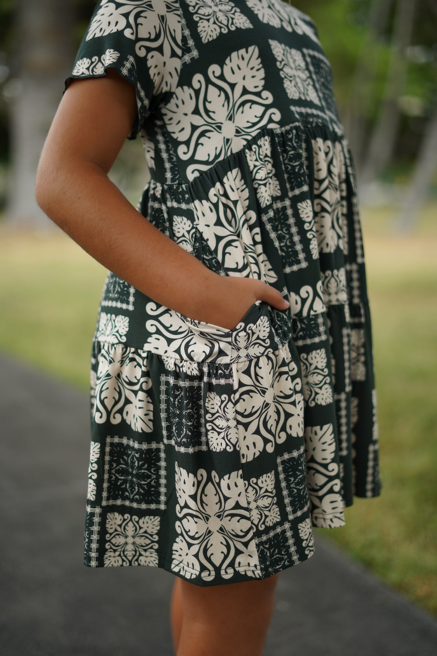 I really like the print, and the emerald green color so I went to your Kapolei store to purchase the matching palazzo pants! The material is so soft and has some stretch. I sized up one for a little more comfort in the crotch area. It thuper cute!