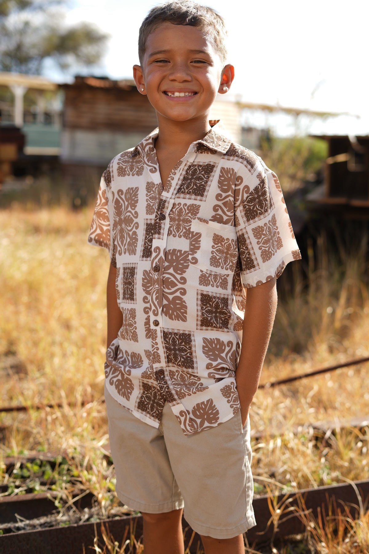 The Ahe Keiki Boy Aloha Shirt is part of our Country Quilt matching apparel collection!