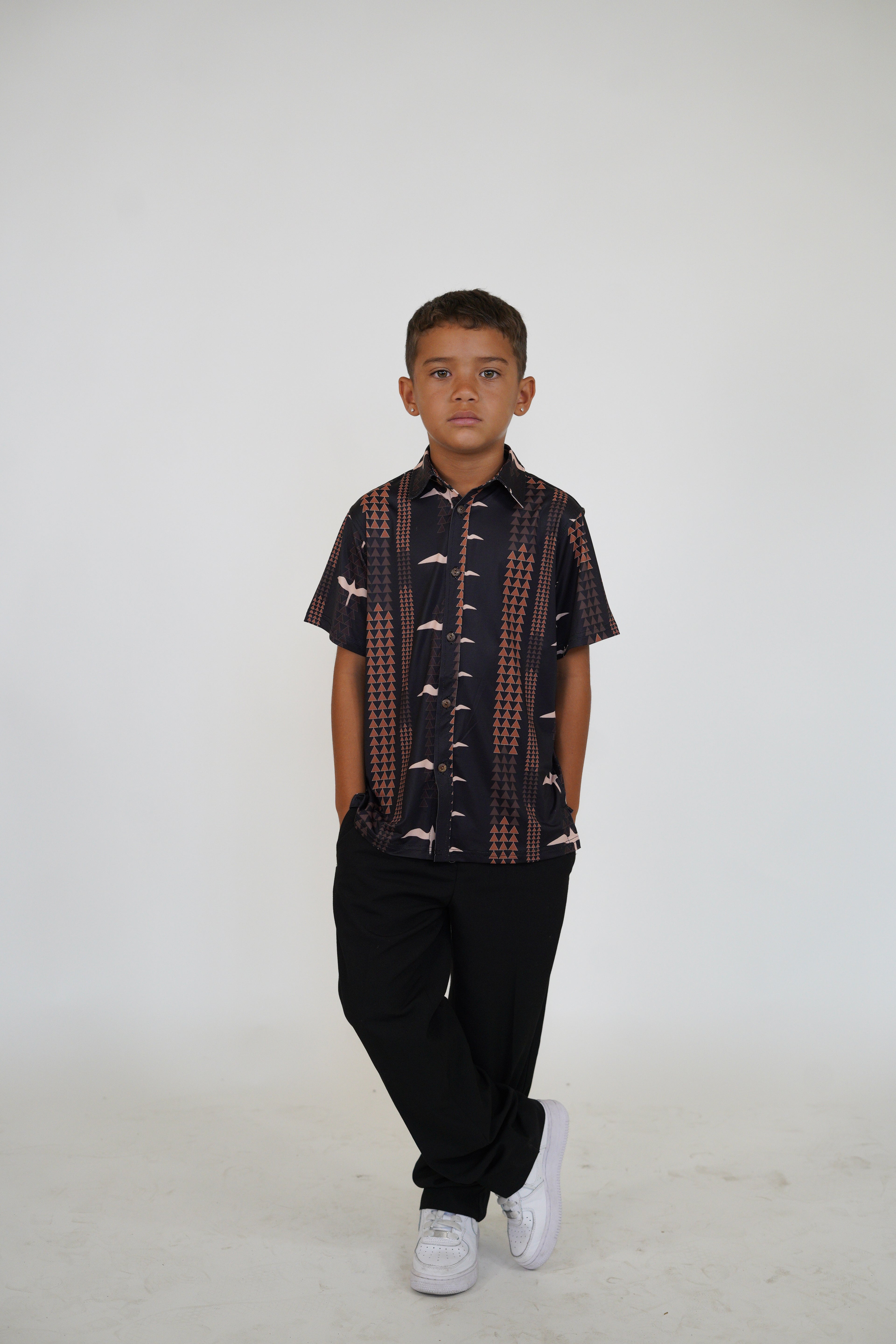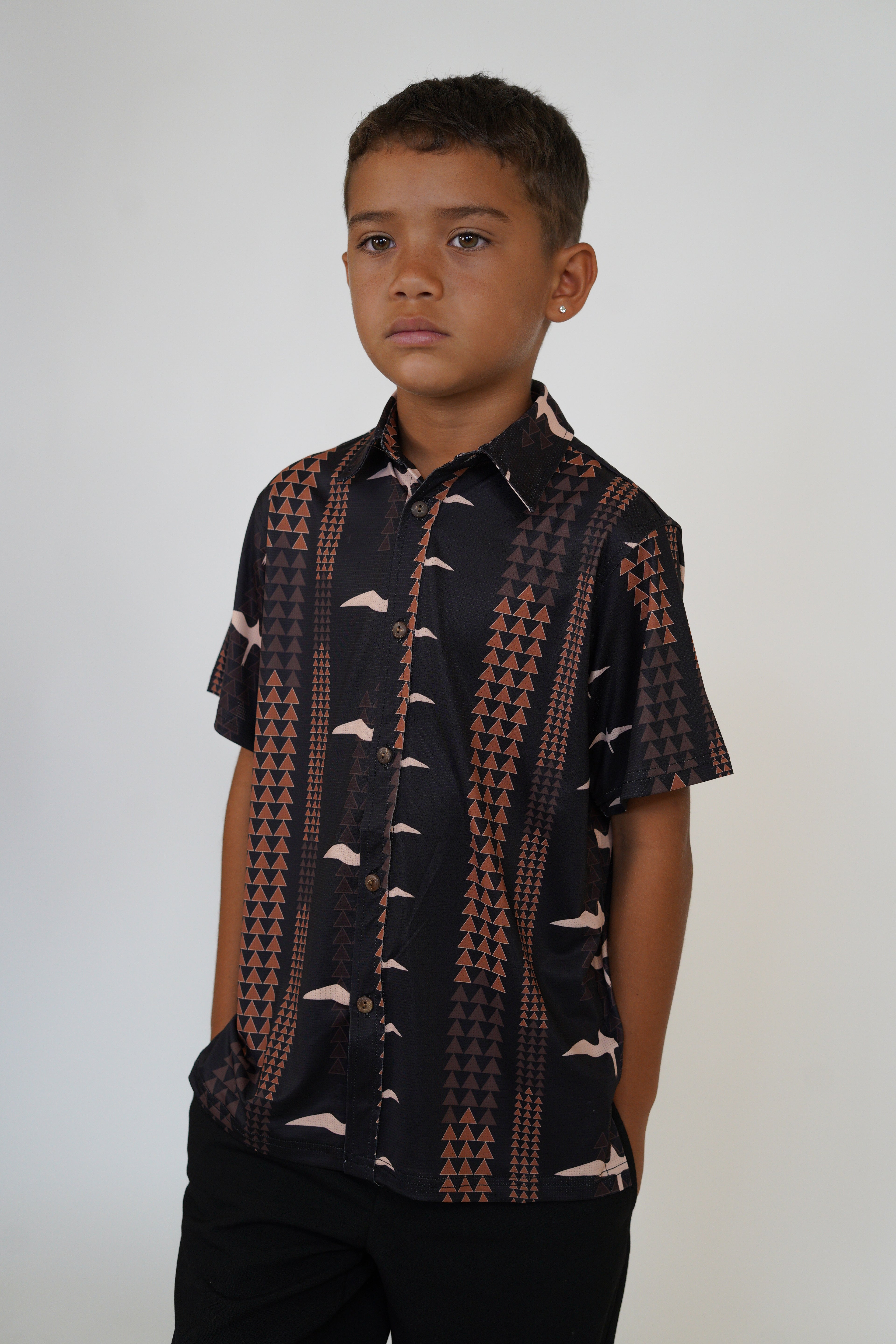 The Makani Keiki Aloha Shirt is part of our Ohana Matching Apparel Collection in Lōkahi Black!