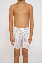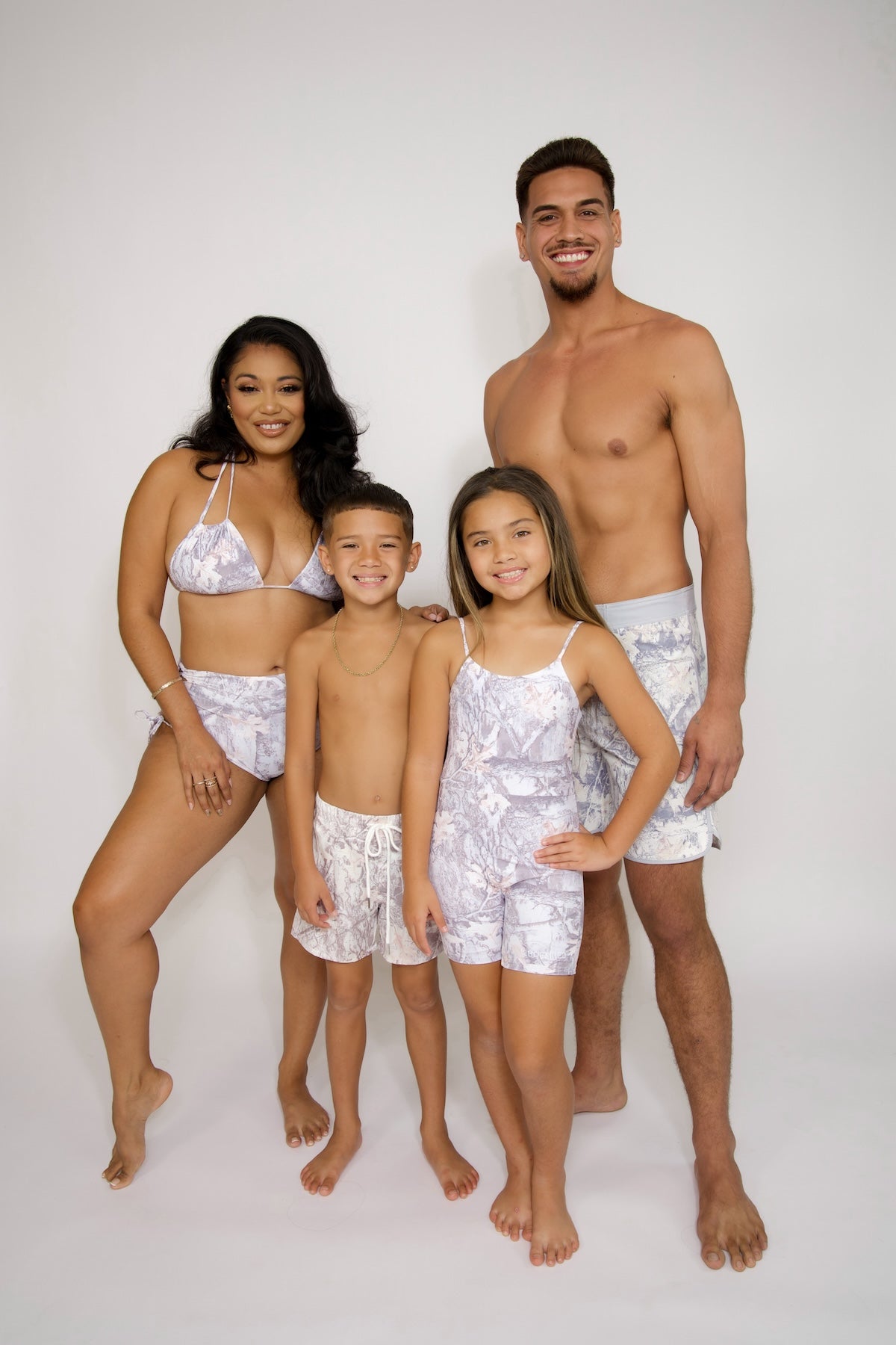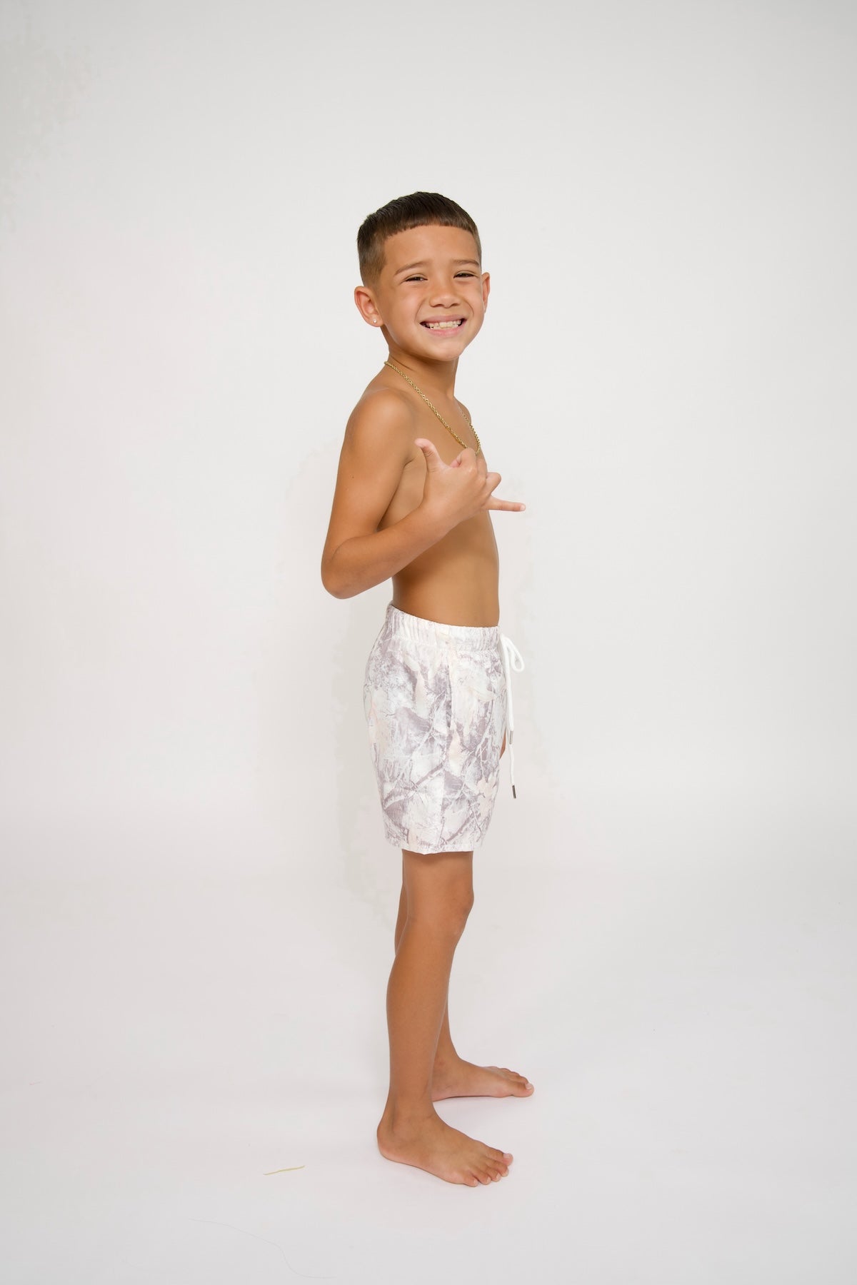 Match your keiki! Our Ohana Matching Swim collection includes these adorable boys swim shorts. Now available in Mauna Kea.