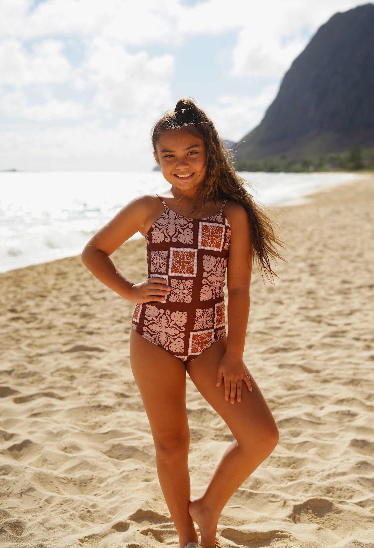 Shop our Ohana Matching Swim collection- now available in the new Country Quilt Rust print!