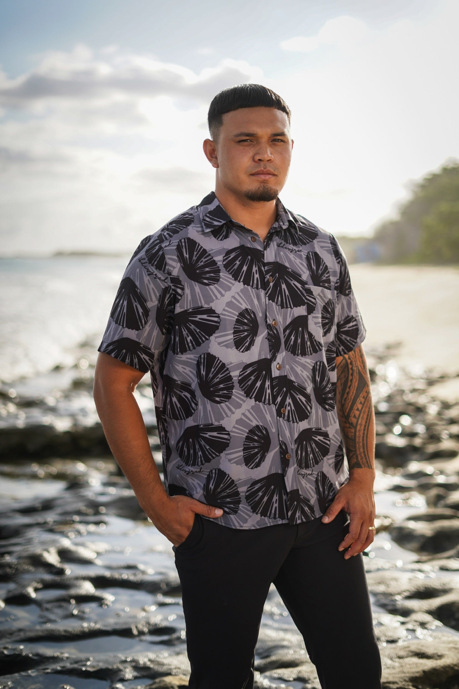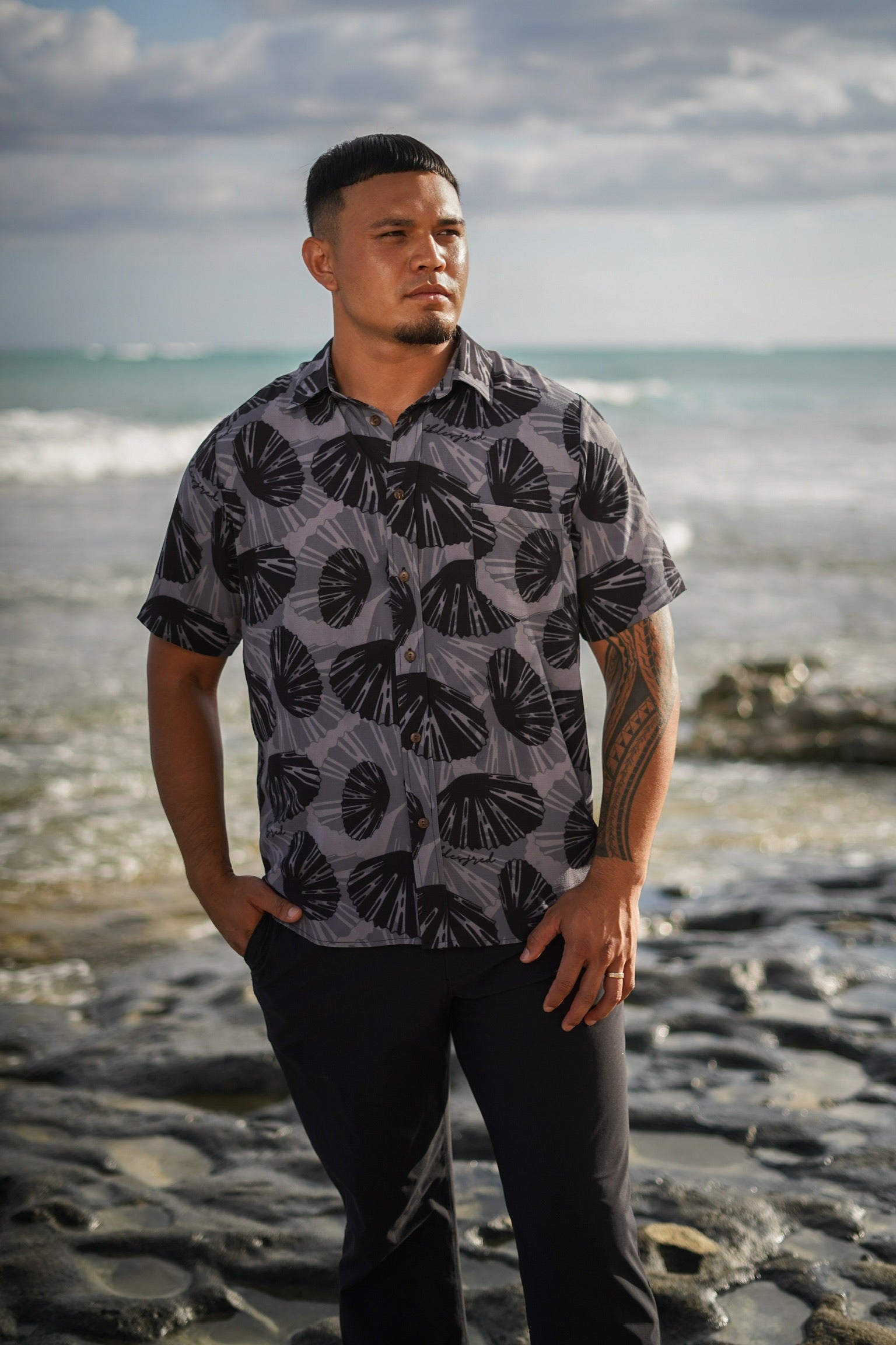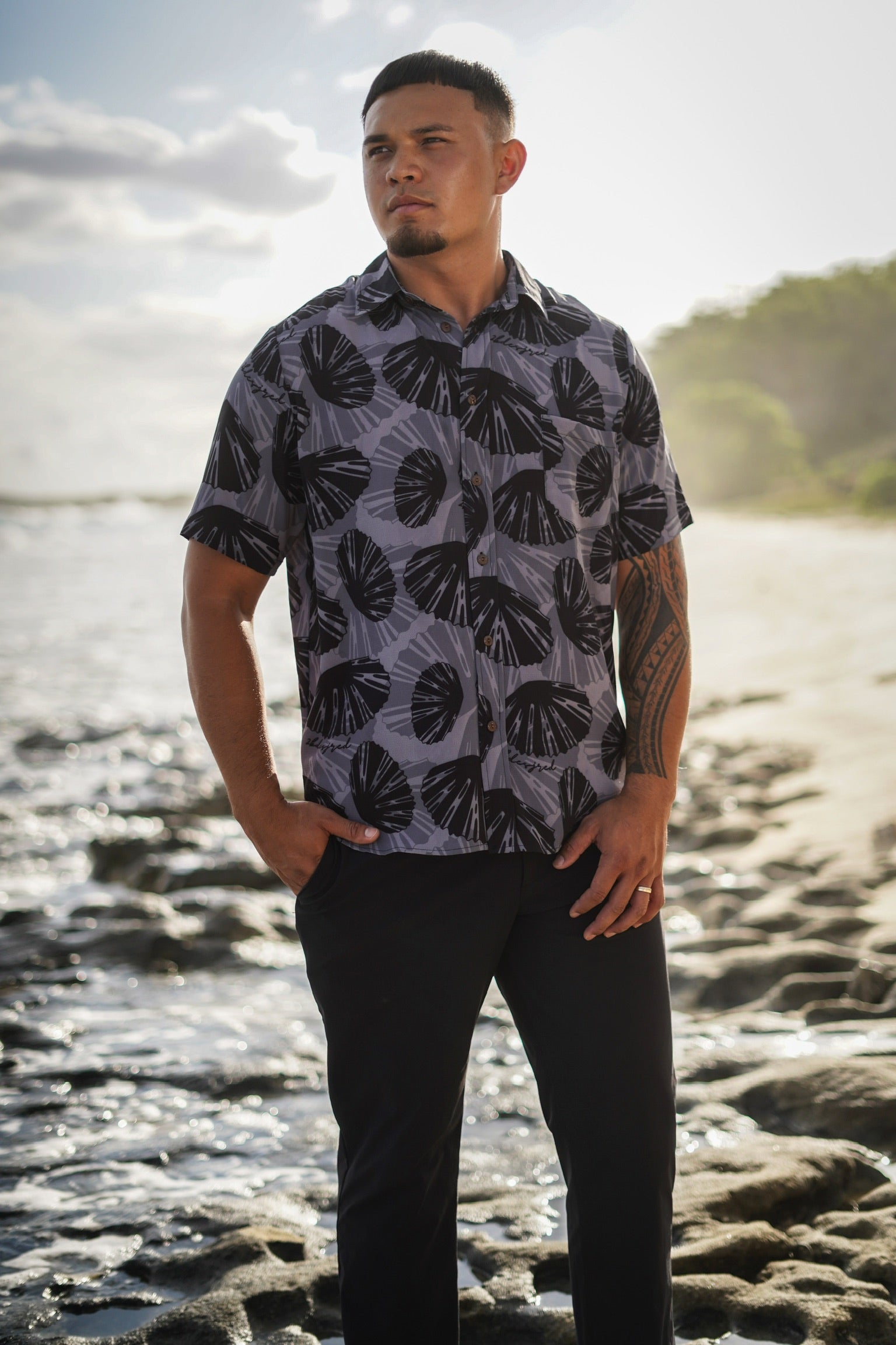 The Keanu Kane Aloha Shirt is comfortable and stylish! Available in Opihi.