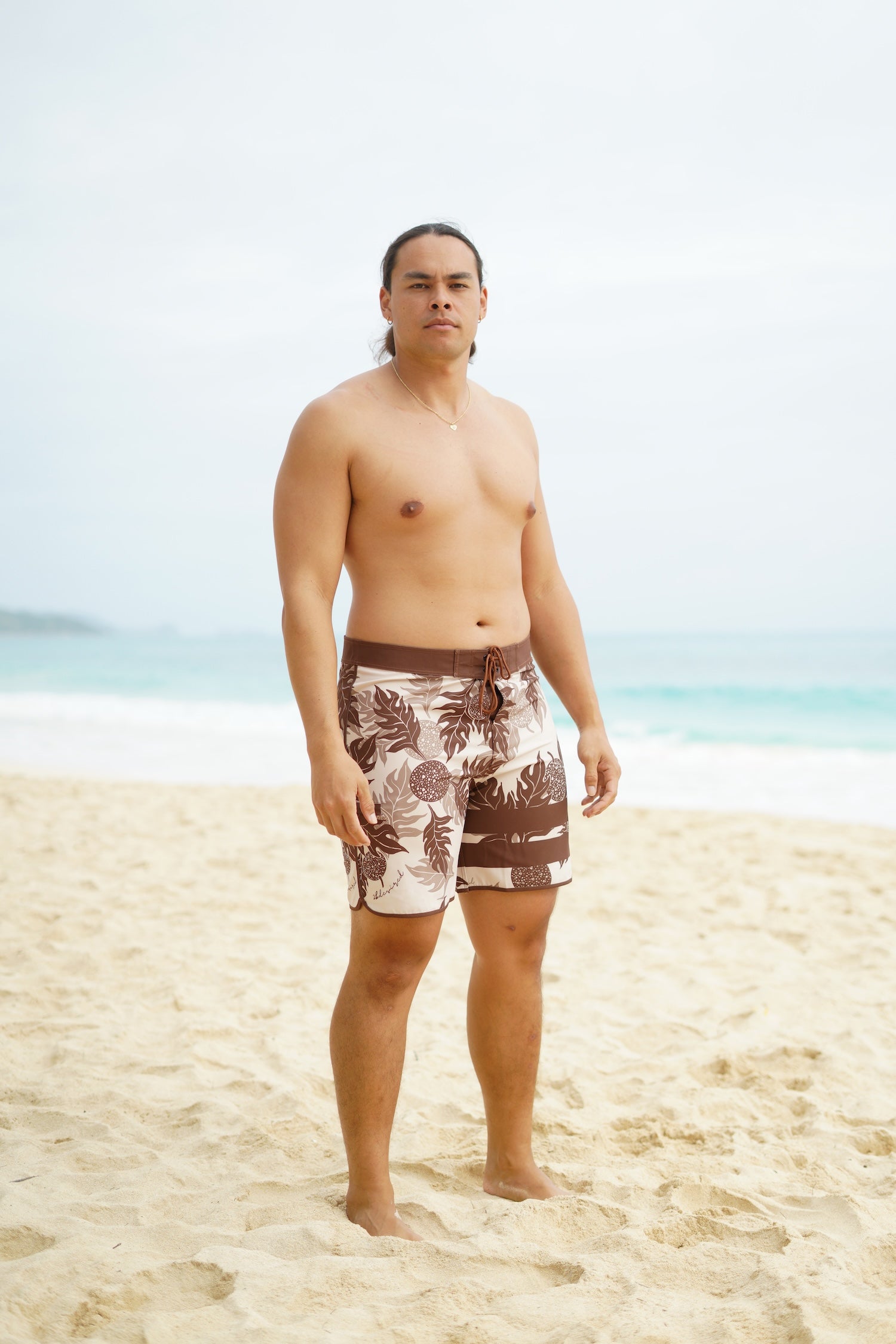 Our Kamekona Board Shorts are available in Ka Ulu Cream.