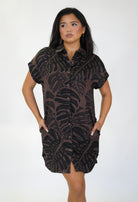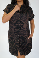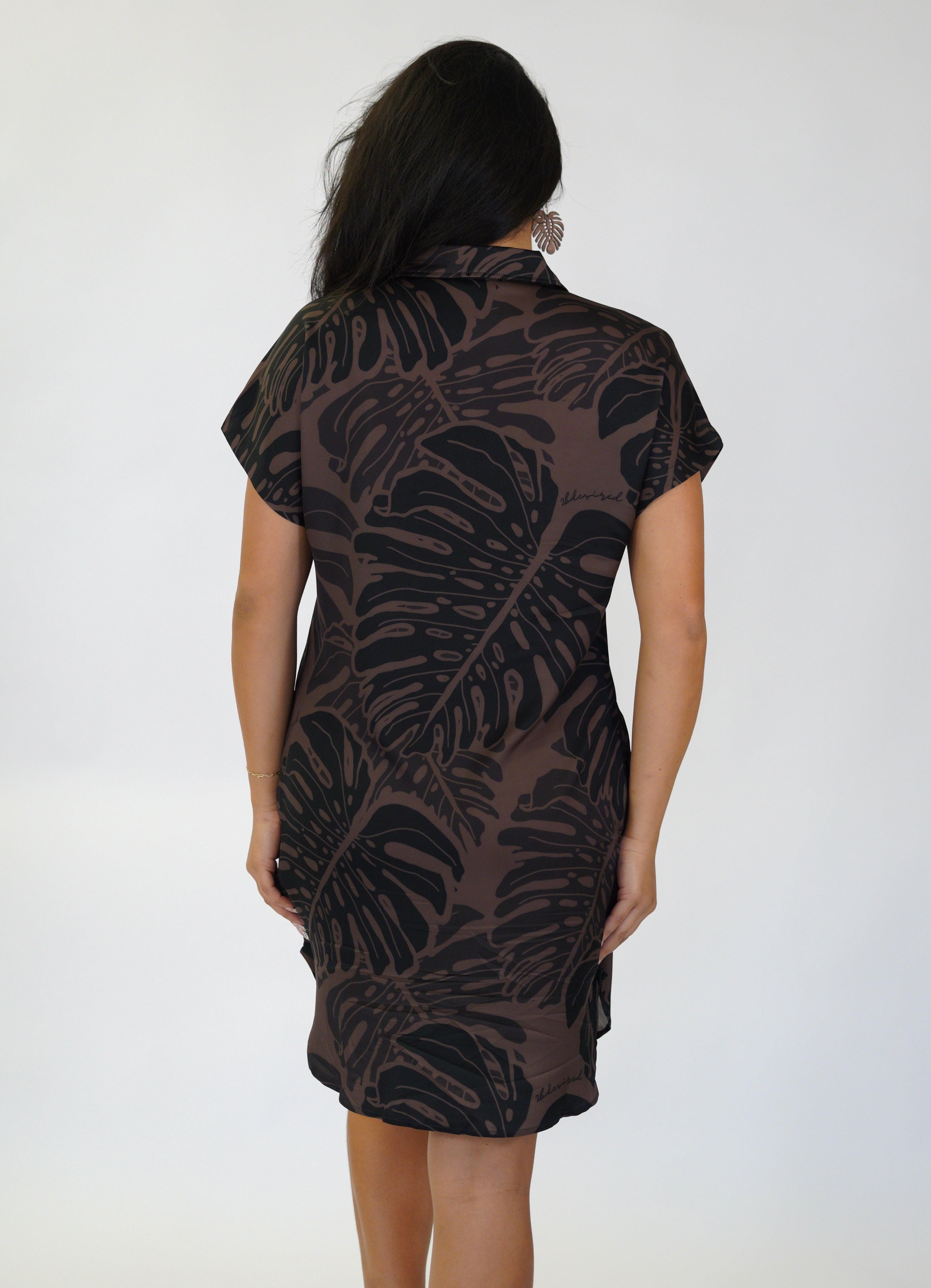 A staple aloha style t-shirt dress. Available in Monstera Midnight Koa!