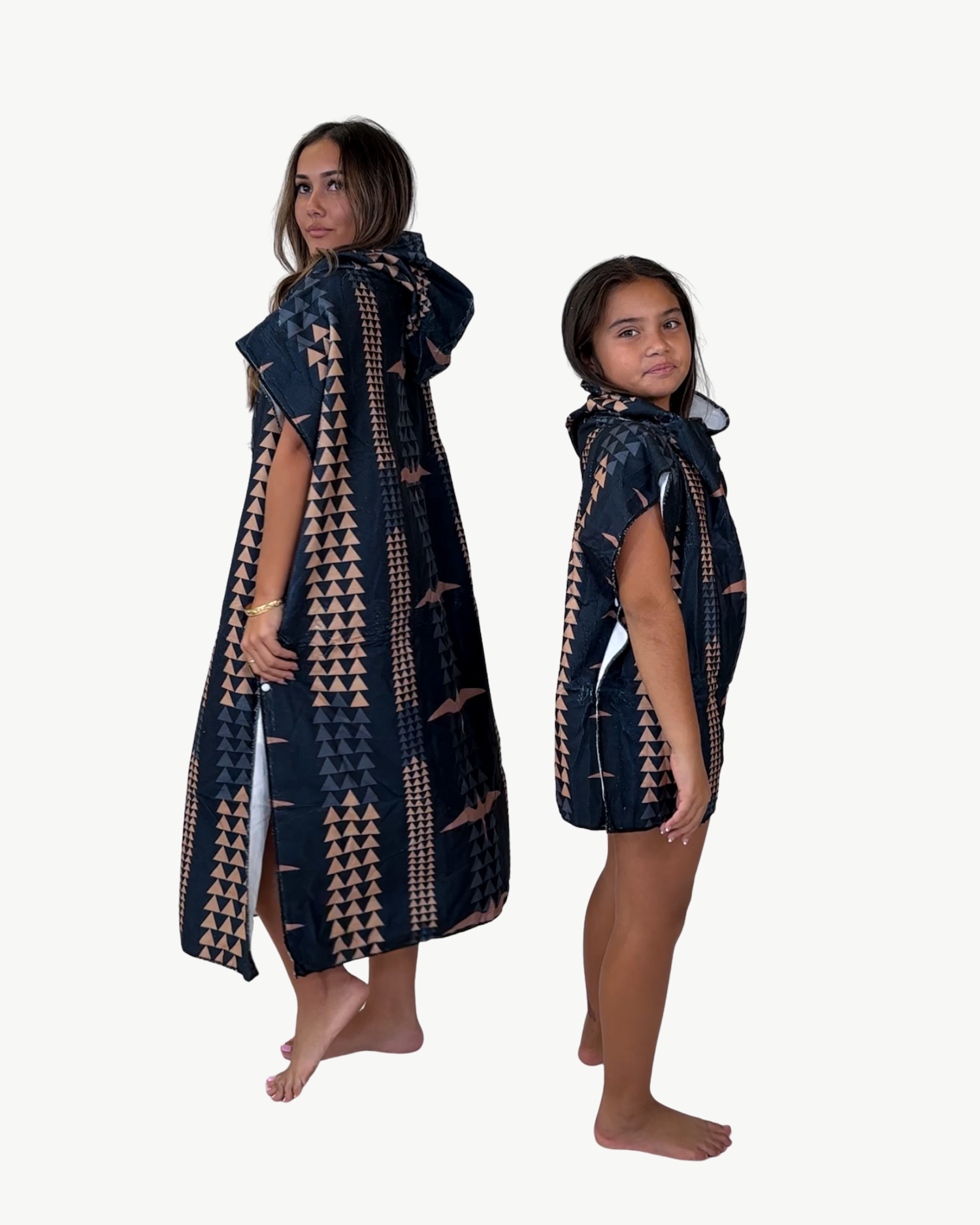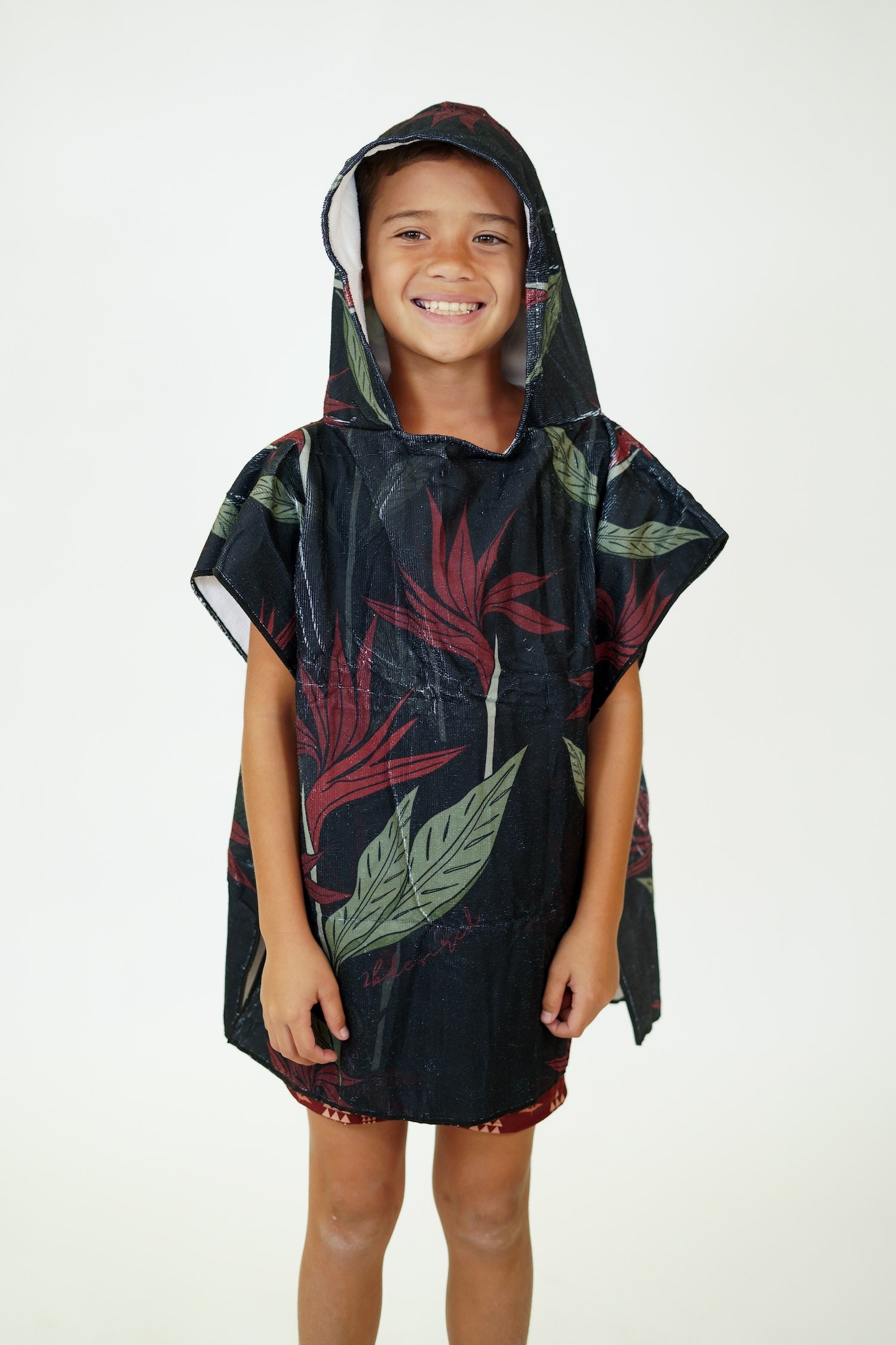 Keep your keiki warm and dry with our Keiki Poncho Towel! Available in Country Quilt, Lōkahi Black and Pua Manu!