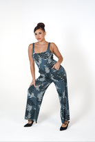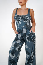 The Kyla Jumpsuit is stretchy and comfortable! Available in Ka Ulu Navy.