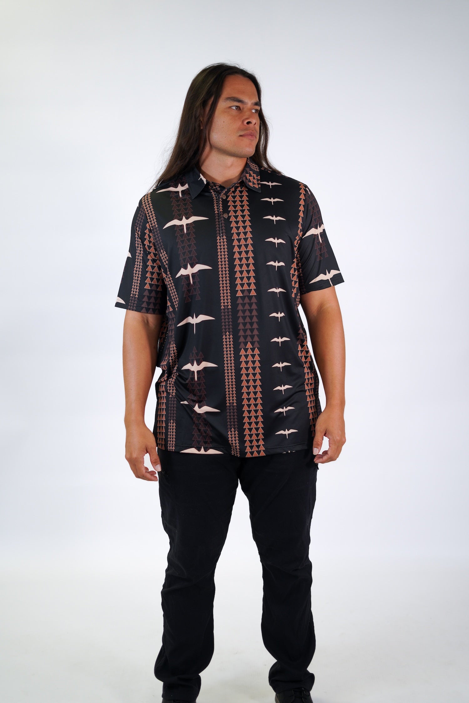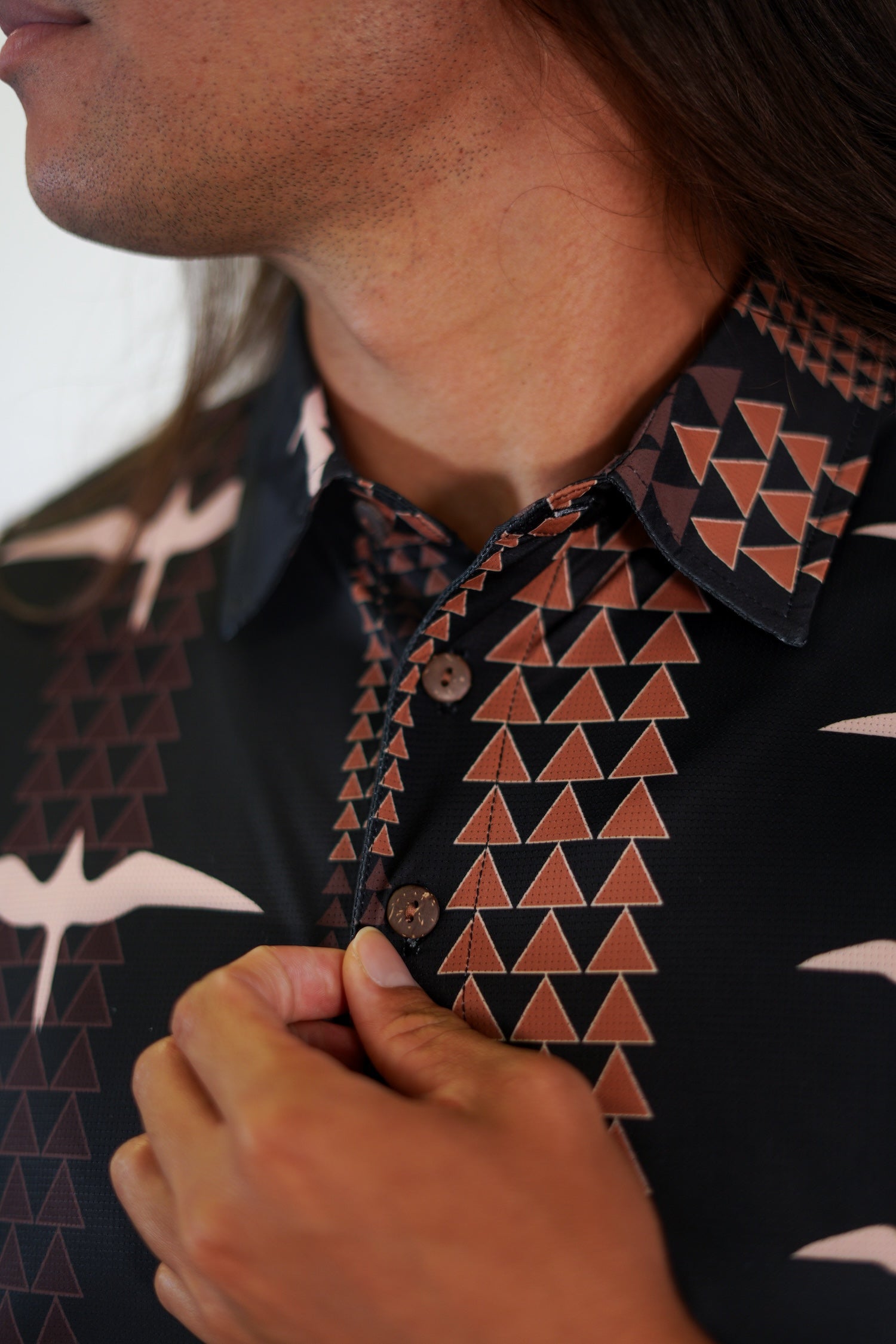 The Liko Dry Fit Polo is part of our Lōkahi Black collection! Lightweight and breathable fabric with wooden buttons and collar.