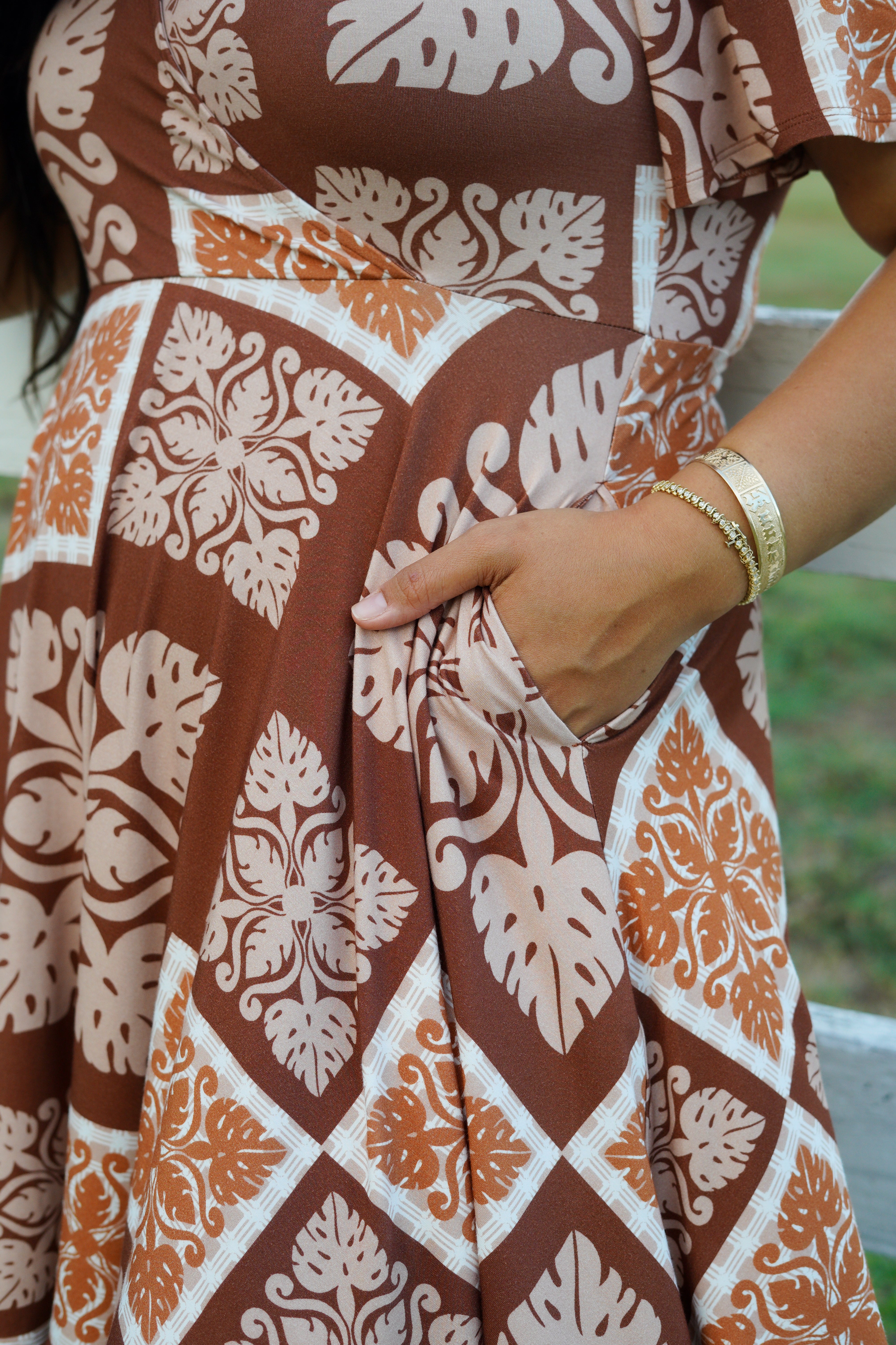 The Naomi Dress is part of our Ohana Matching Apparel collection in Country Quilt Rust!