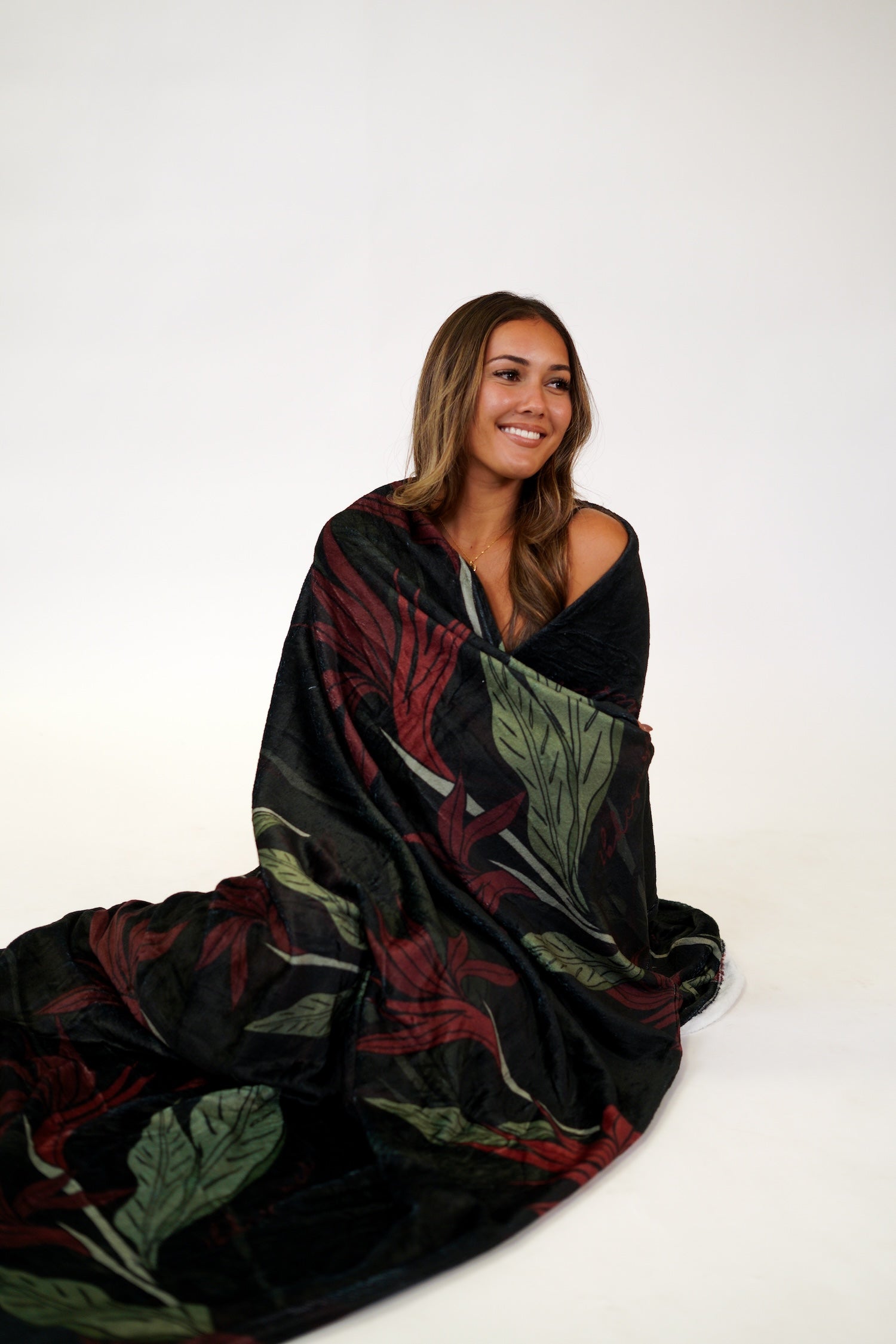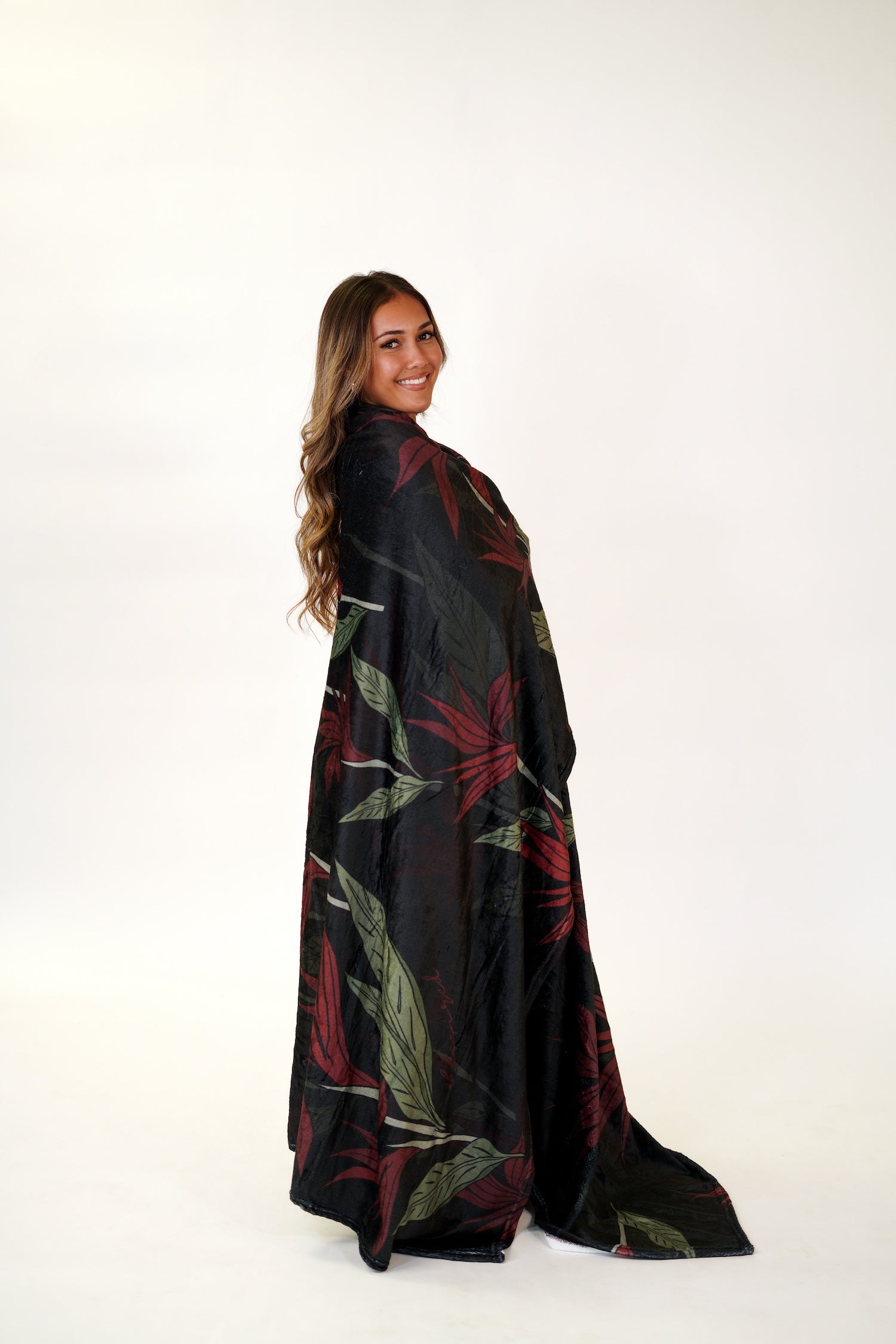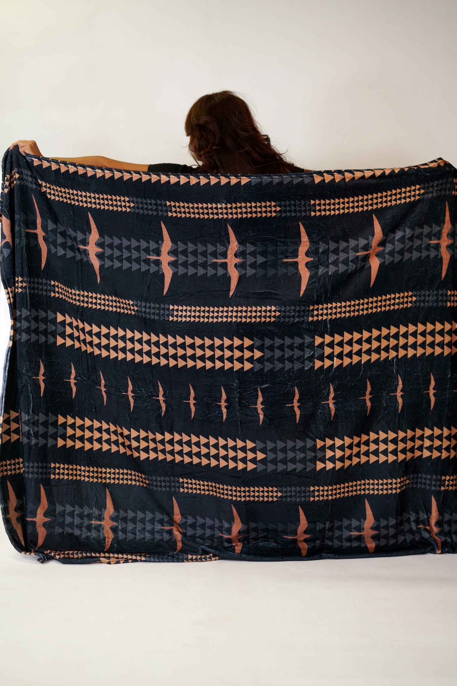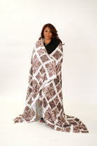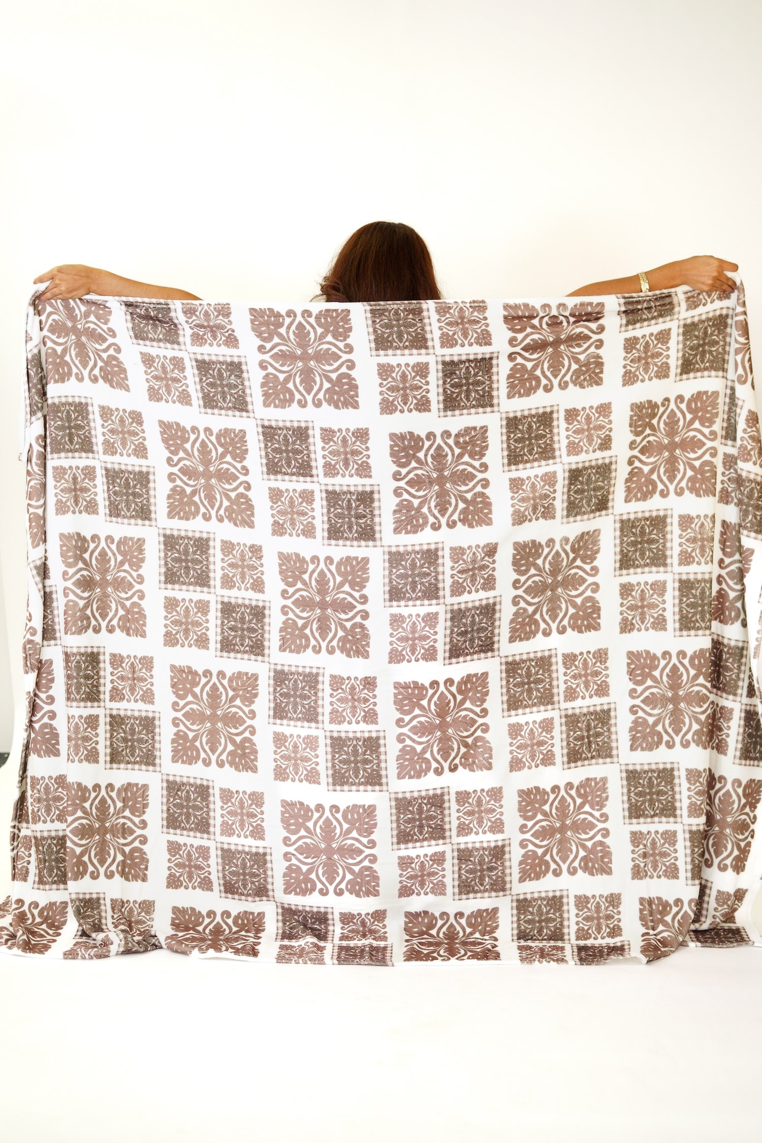 The Pumehana Blanket is extra large and cozy! Available in 3 prints: Lōkahi Black, Country Quilt, and Pua Manu.