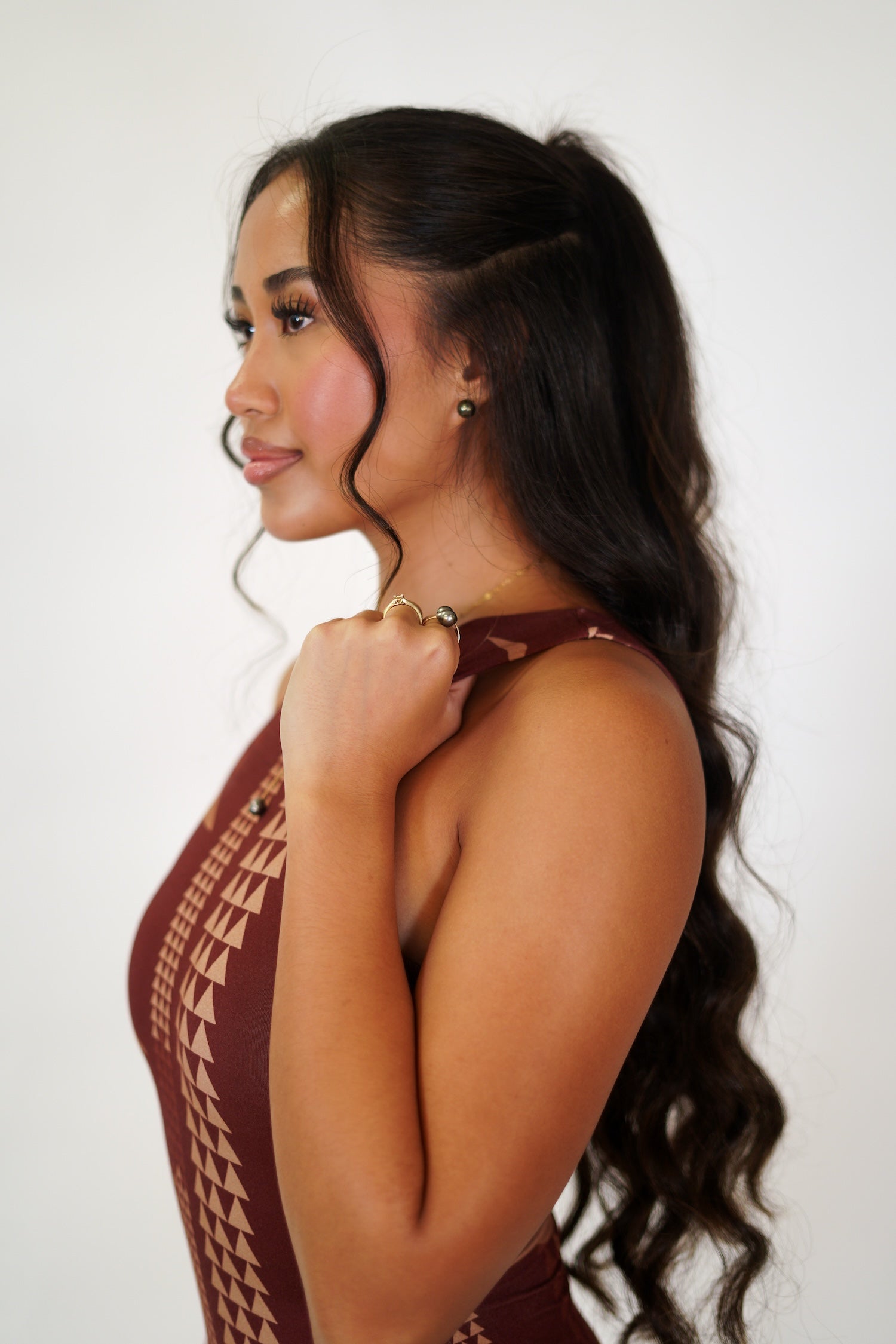 I really like the print, and the emerald green color so I went to your Kapolei store to purchase the matching palazzo pants! The material is so soft and has some stretch. I sized up one for a little more comfort in the crotch area. It thuper cute!