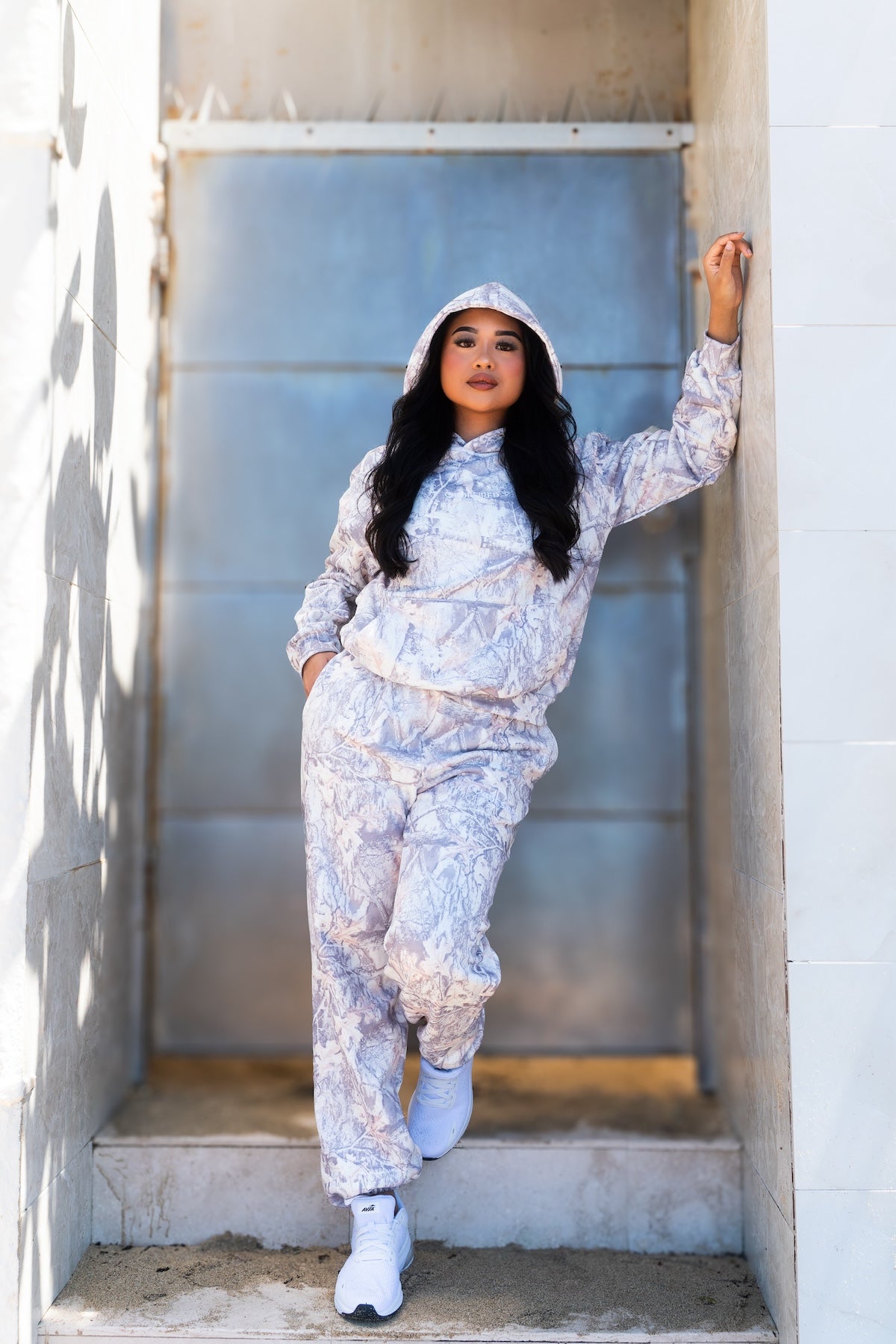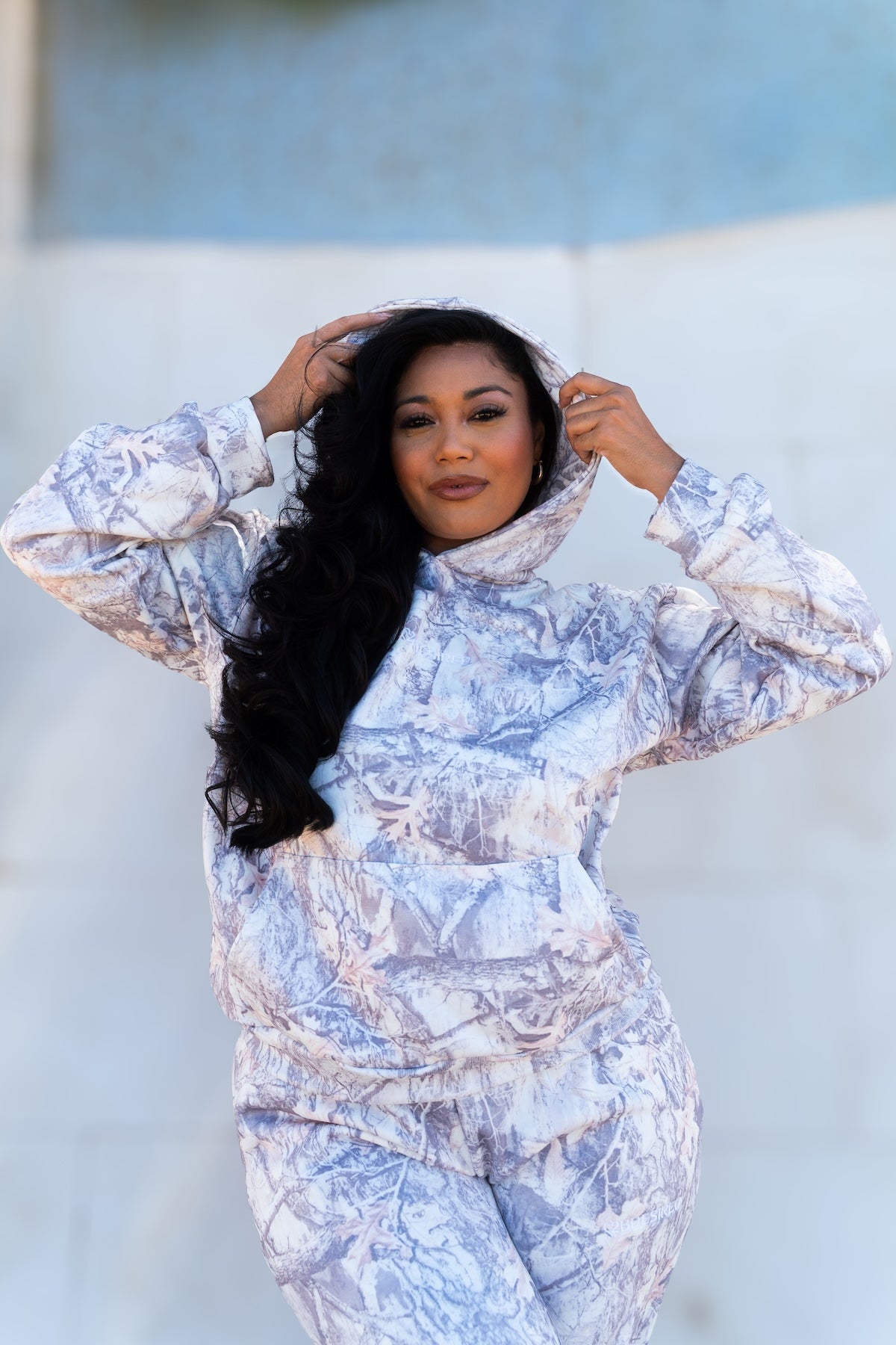 The Camila Hoodie is extra comfy! Available in Mauna Kea print. Pair with the Camila Sweatpants!