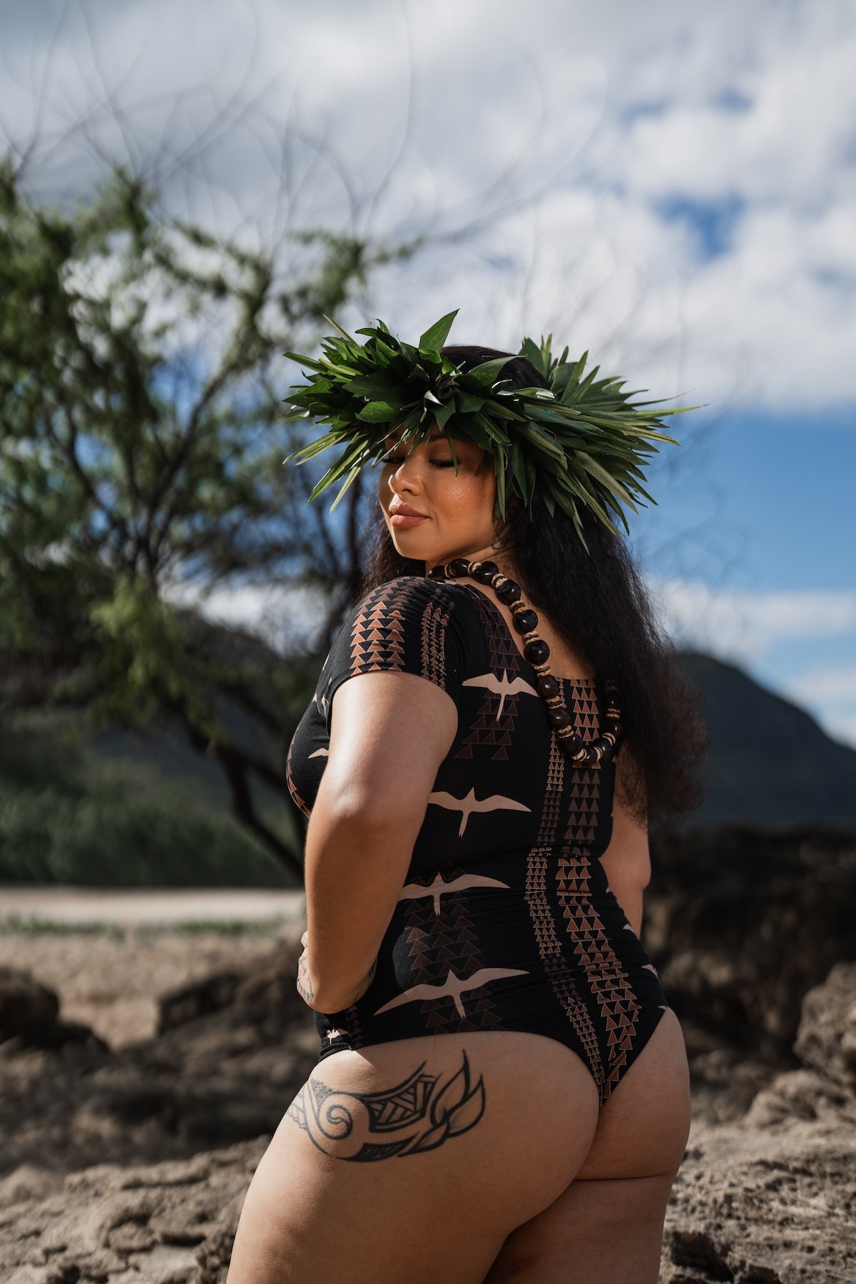 The Ella Bodysuit is part of our exclusive Merrie Monarch collection! Available in Lōkahi Black.
