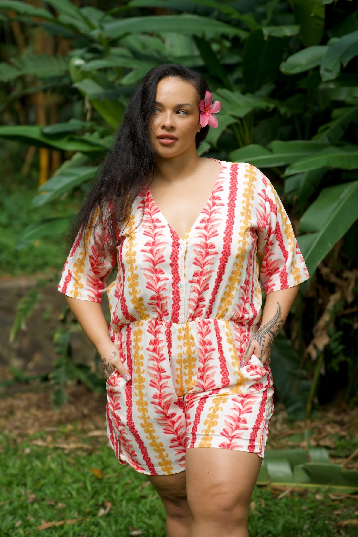 Introducing 2BD Aloha Wear! The Ipo Romper is easy and comfortable. Available in Plumeria Black or White!