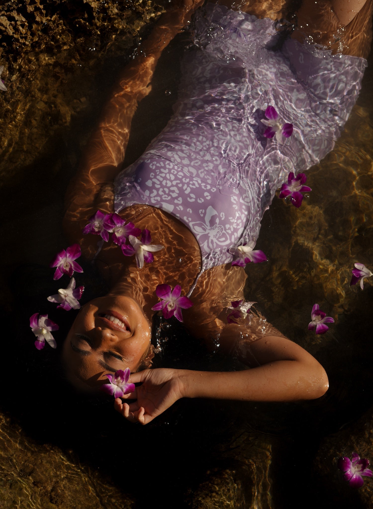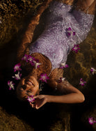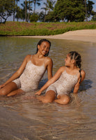 The Leinani Romper is available in Orchid Cheetah Nude, Lilac and Blue! Match your keiki with the Lilo Romper.