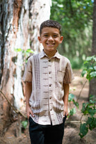The Ahe Keiki Boy Aloha Shirt is part of our Lōkahi Nude matching apparel collection!