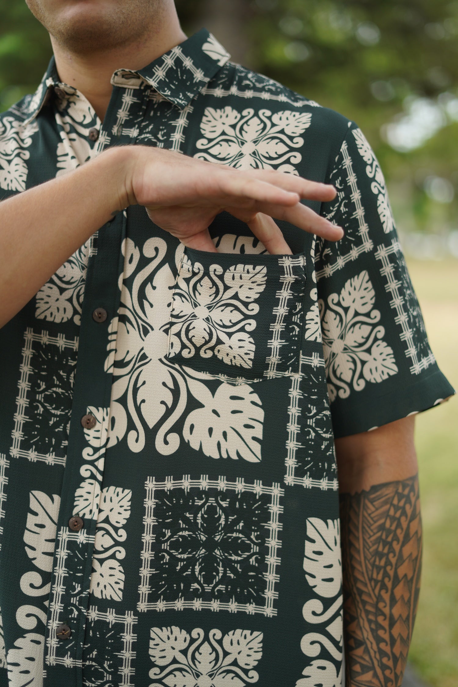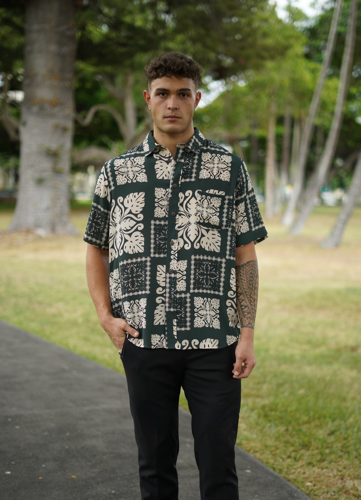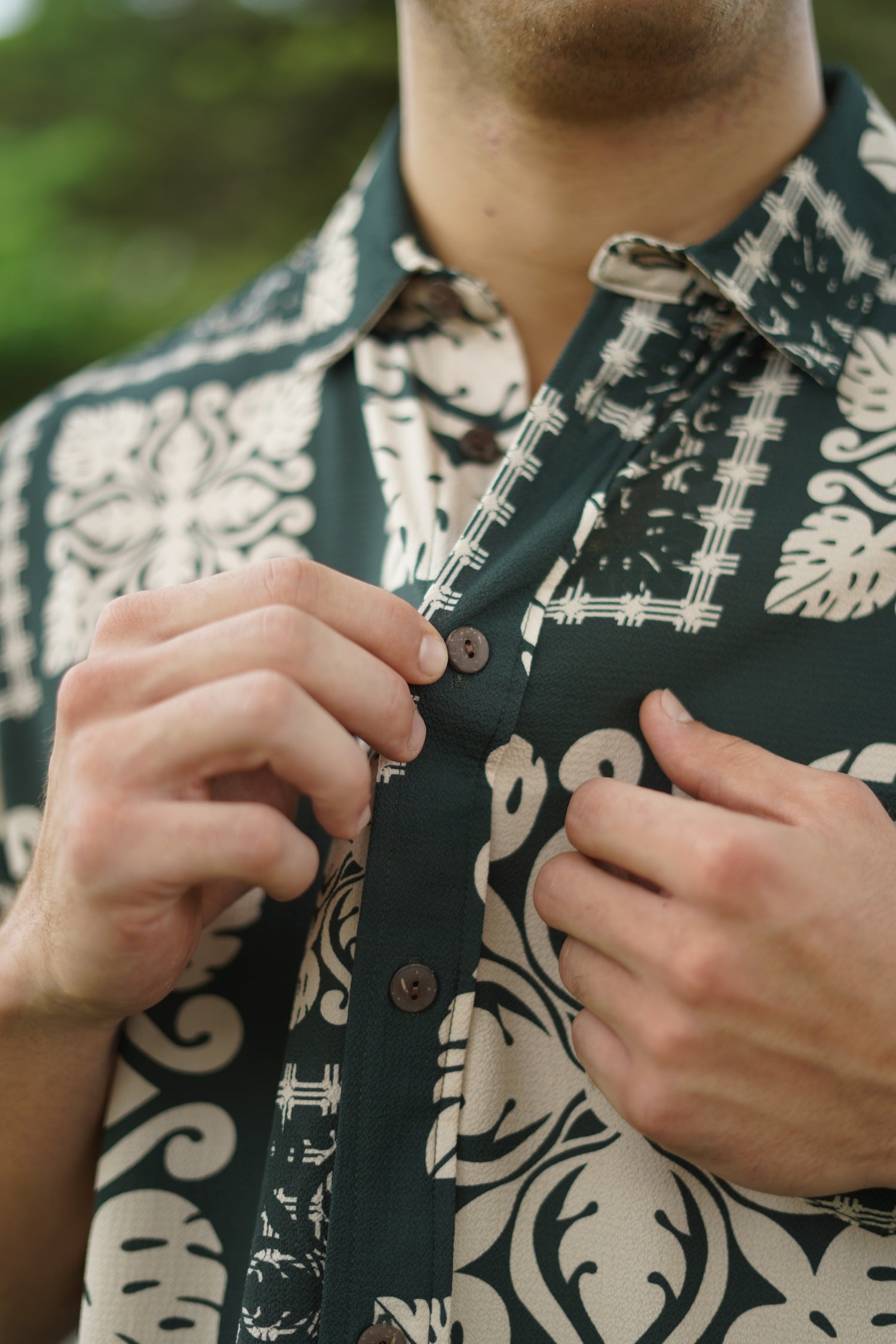 The Keanu Kane Aloha Shirt is comfortable and stylish! Available in Country Quilt Emerald.