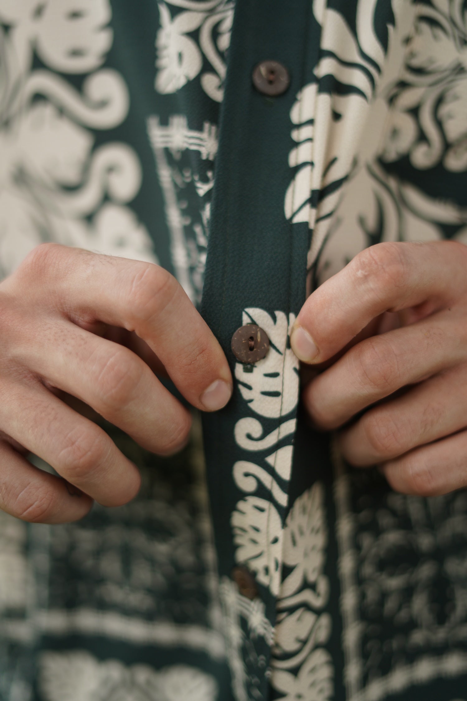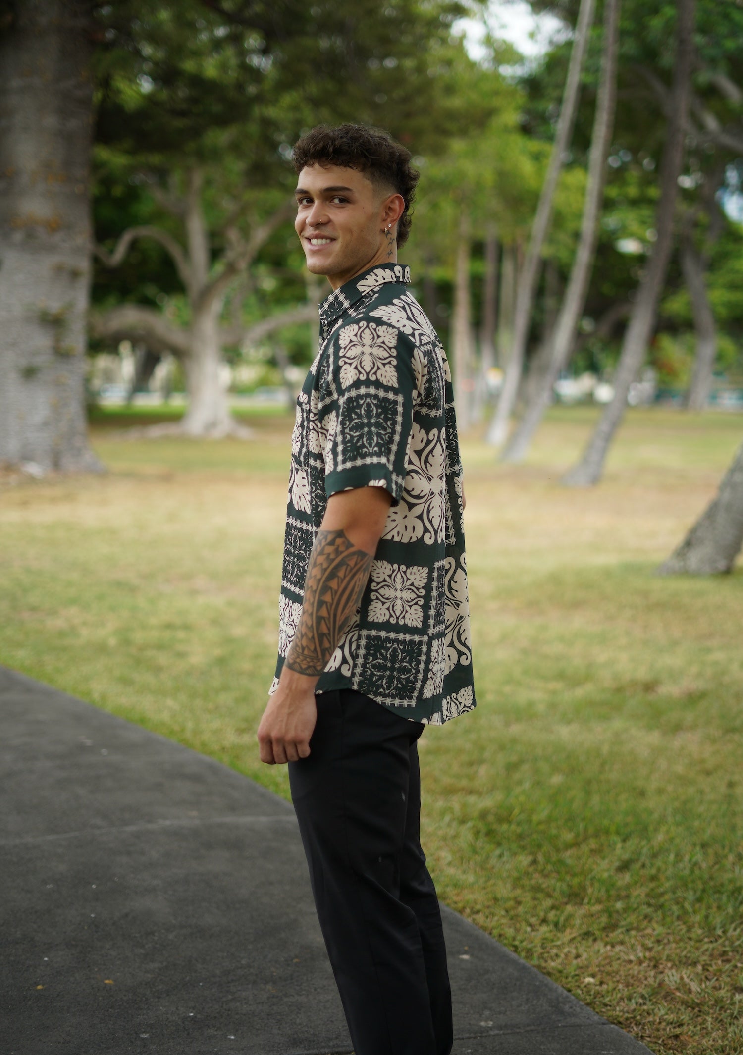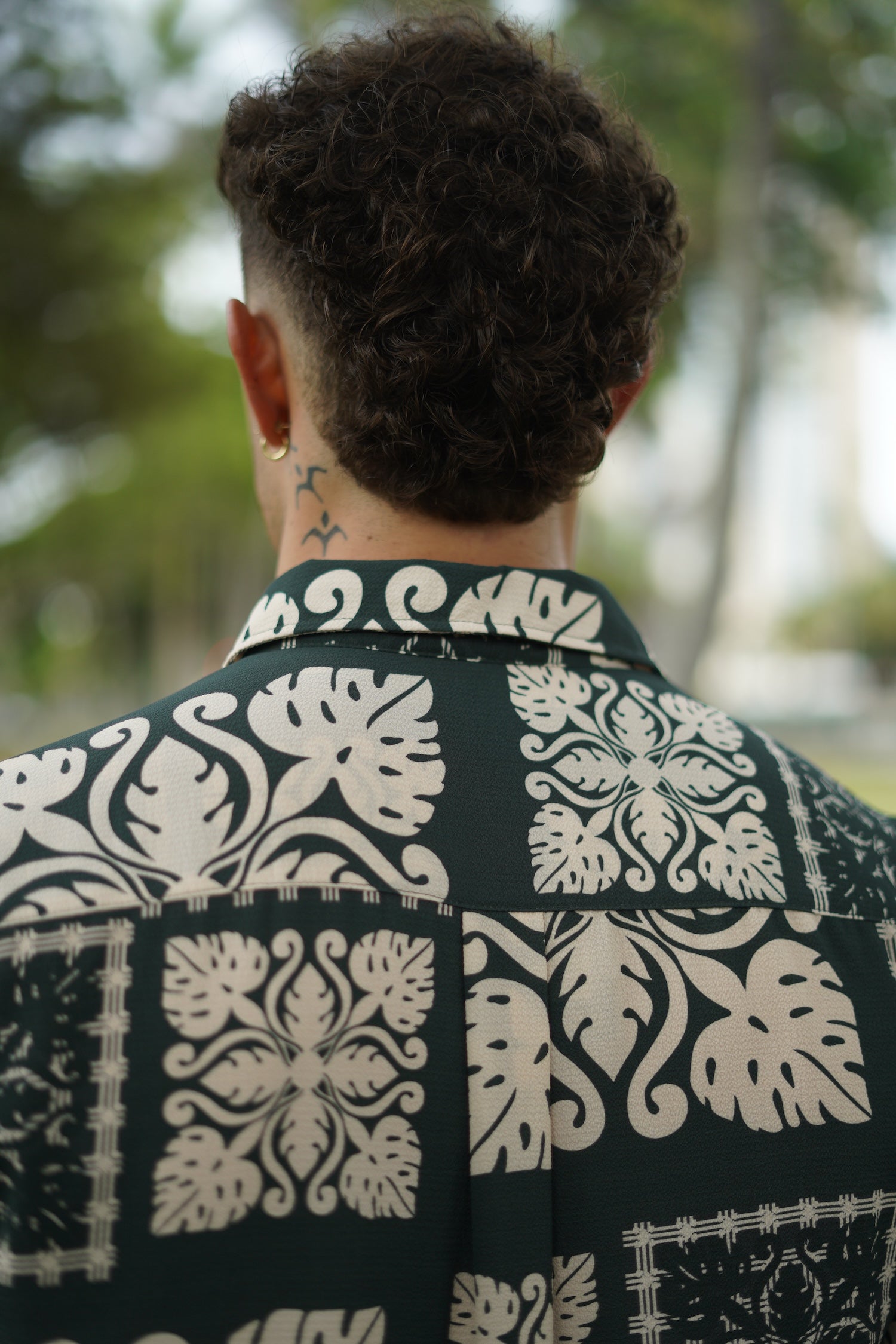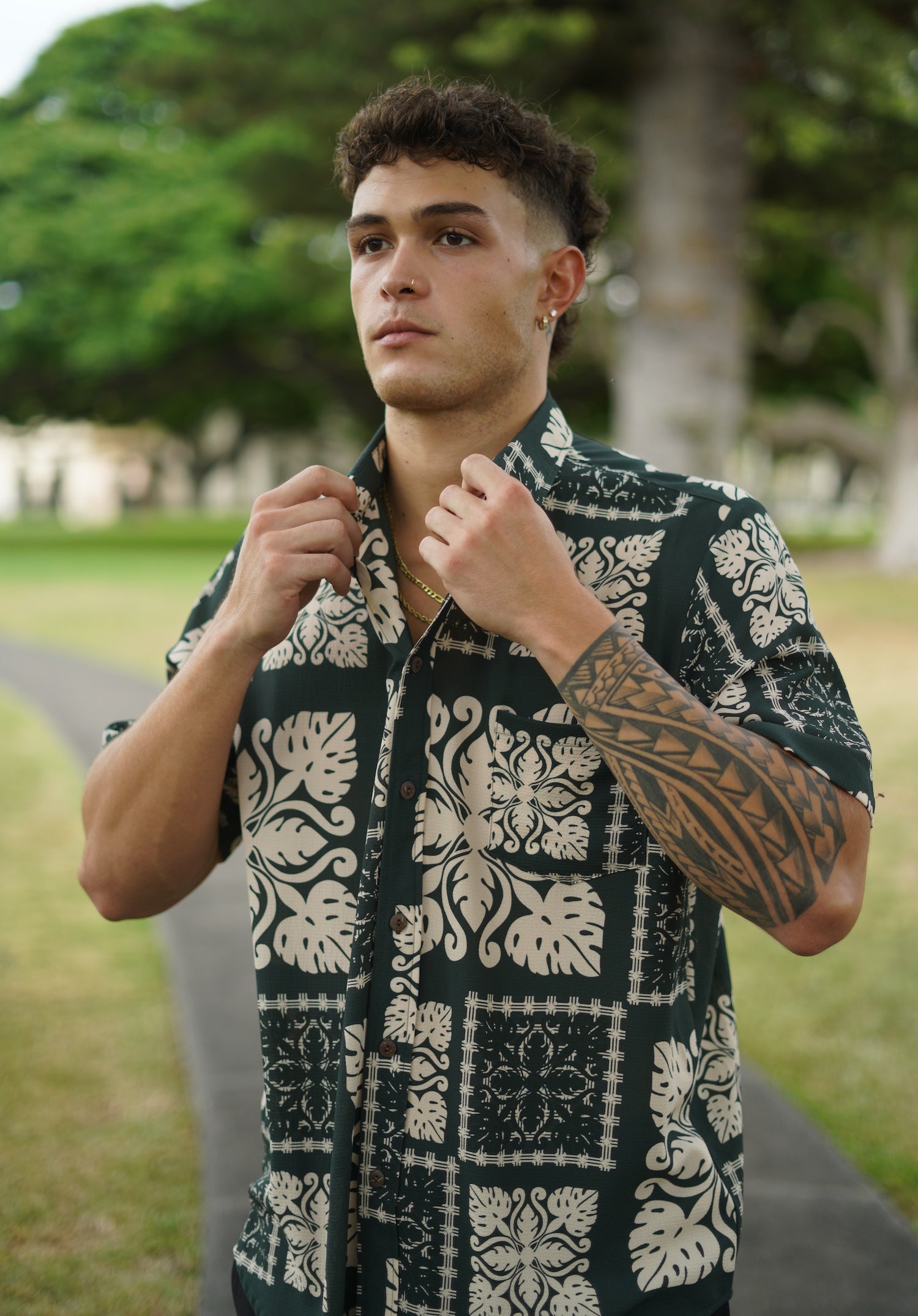The Keanu Kane Aloha Shirt is comfortable and stylish! Available in Country Quilt Emerald.